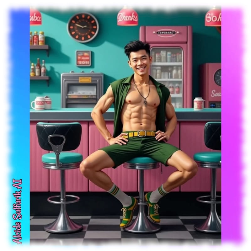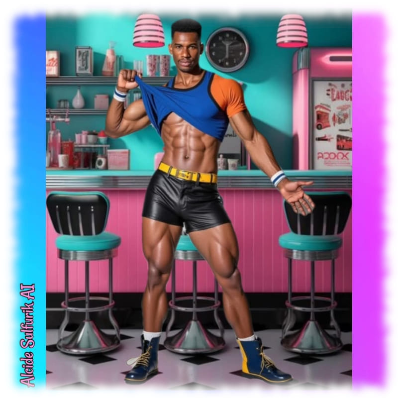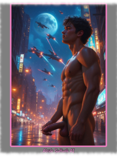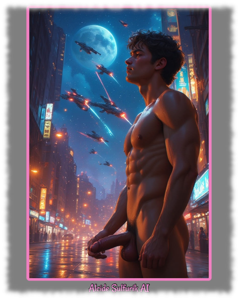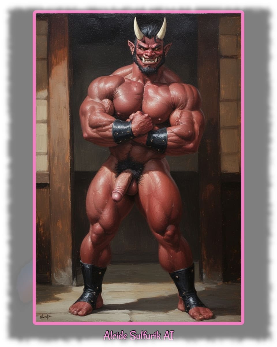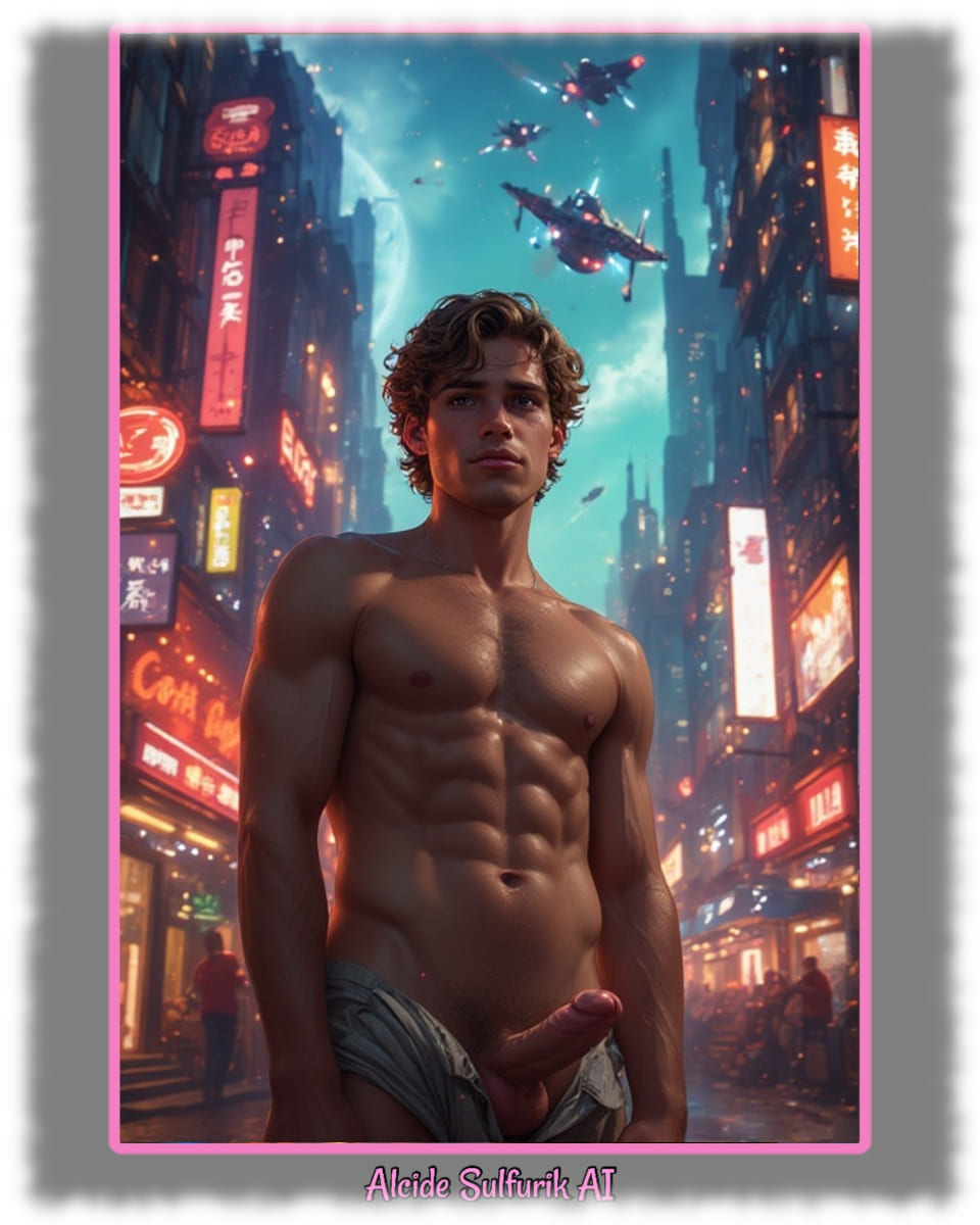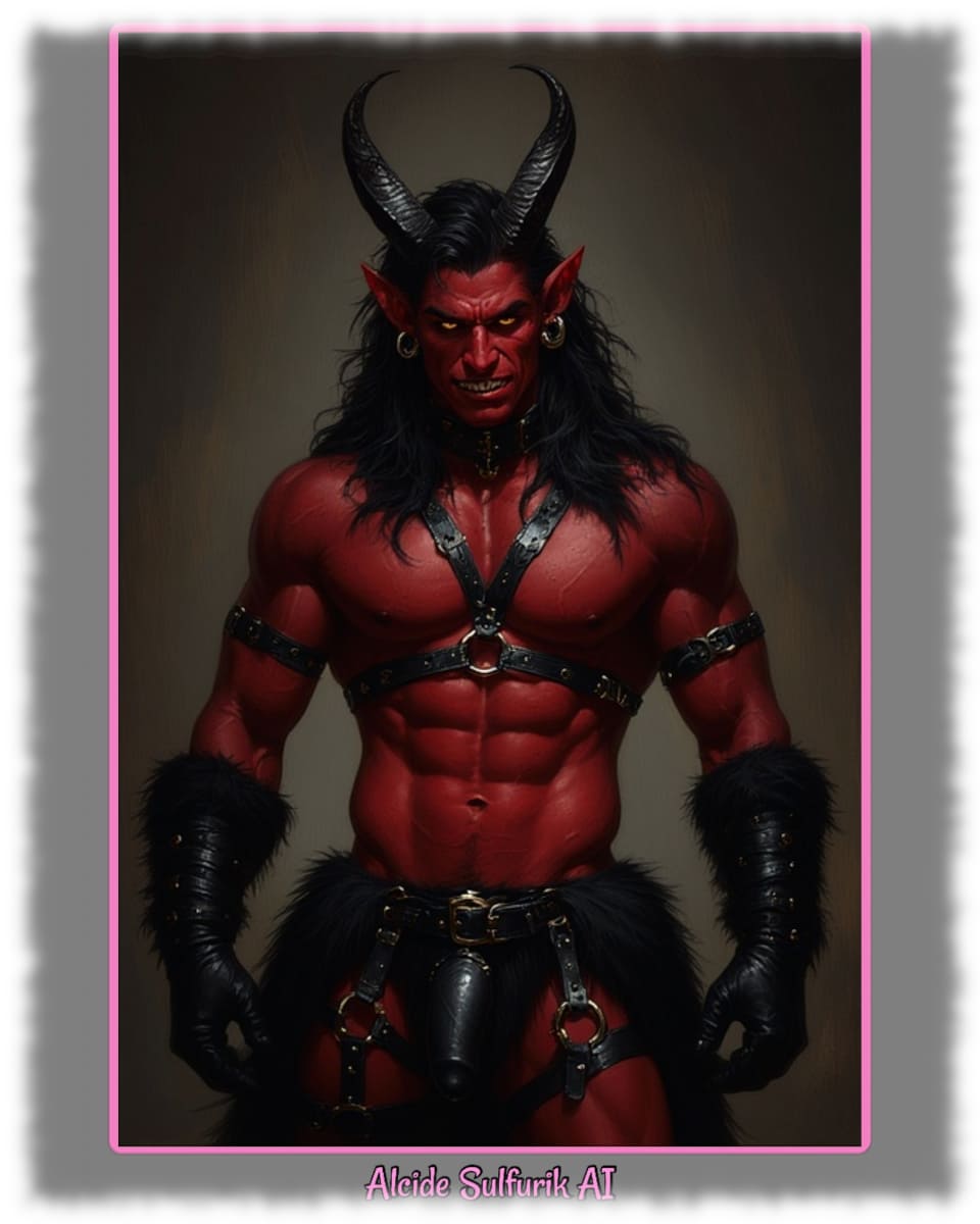 Die Werke zeigen verwegene Piraten, verweben Engel mit reiner Sinnlichkeit, Dämonen mit dunkler Verführung und Götter, die nackt und zeigefreudig ihre Macht entfalten. Alcide Sulfurik AI ist ein KI-Künstler, der Körper, Fantasie und Mythos zu intensiven Bildern verschmilzt – roh, verspielt und voller homoerotischer Spannung.