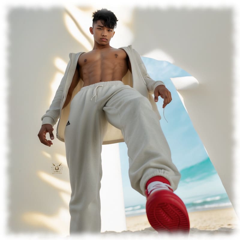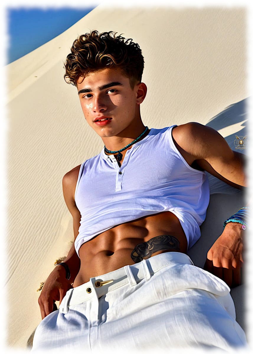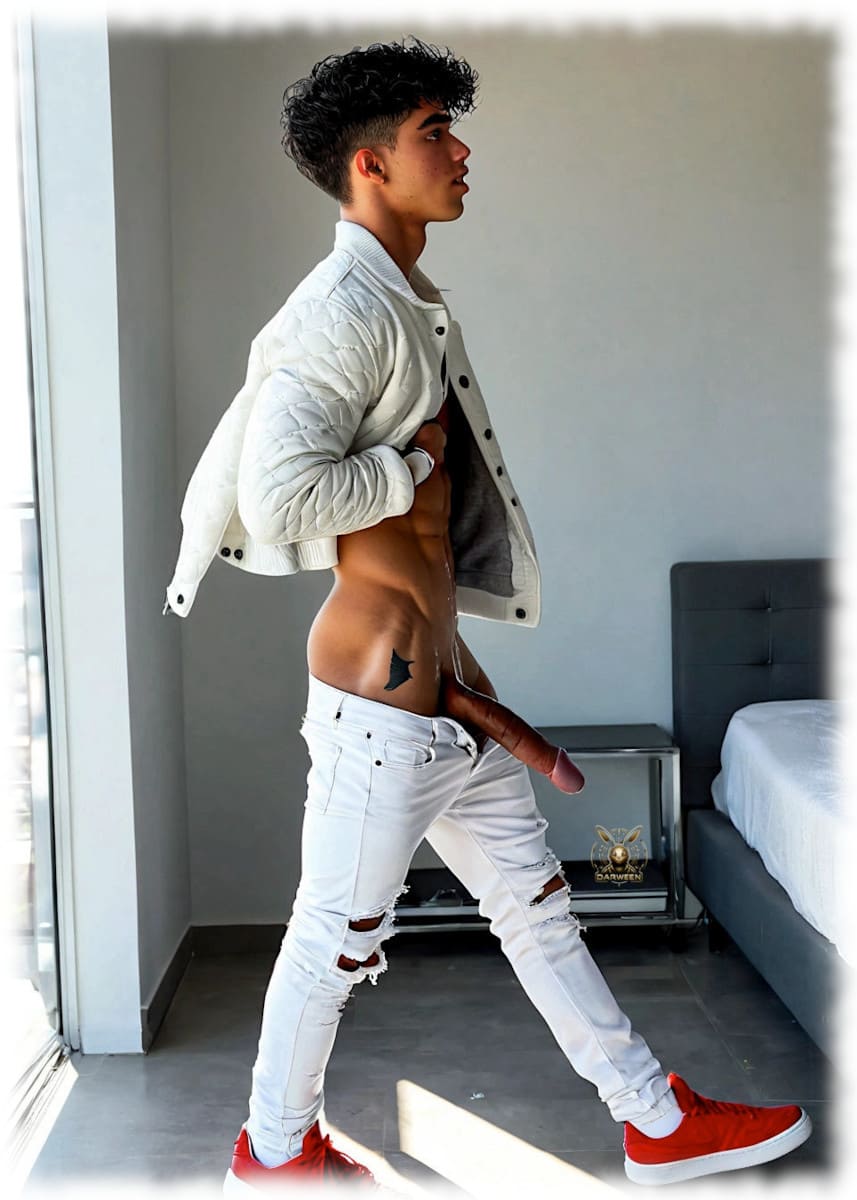 Darween Studio zeigt die ausdrucksstarken Werke eines KI-Künstlers, der junge, muskulöse Männer mit perfekten Modelmaßen in unterschiedlichsten Situationen porträtiert. Von sinnlichen Nahaufnahmen über inszenierte Alltagsszenen bis hin zu kunstvollen Posen entfalten sich Bildwelten, die homoerotische Spannung und maskuline Schönheit betonen.
