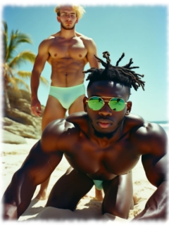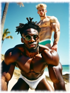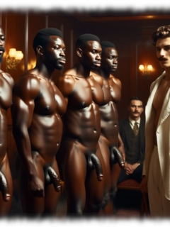 Eager 1 erschafft mit modernster KI-Technologie eine fesselnde und sinnliche Welt homoerotischer Kunst, in der fast ausschließlich farbige, muskulöse Männer im Mittelpunkt stehen. Ihre Körper sind kraftvoll, mit perfekten Proportionen und oft imposant bestückt. In unterschiedlichsten Szenen – von sinnlich-intimen Momenten bis zu teils unterwürfigen Posen – zeigen sie sich nackt, selbstbewusst, zeigefreudig und in offener Erregung.