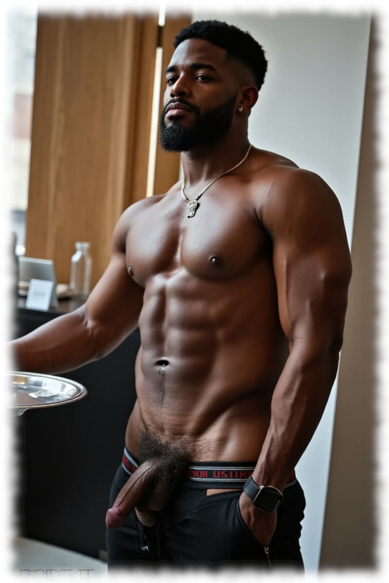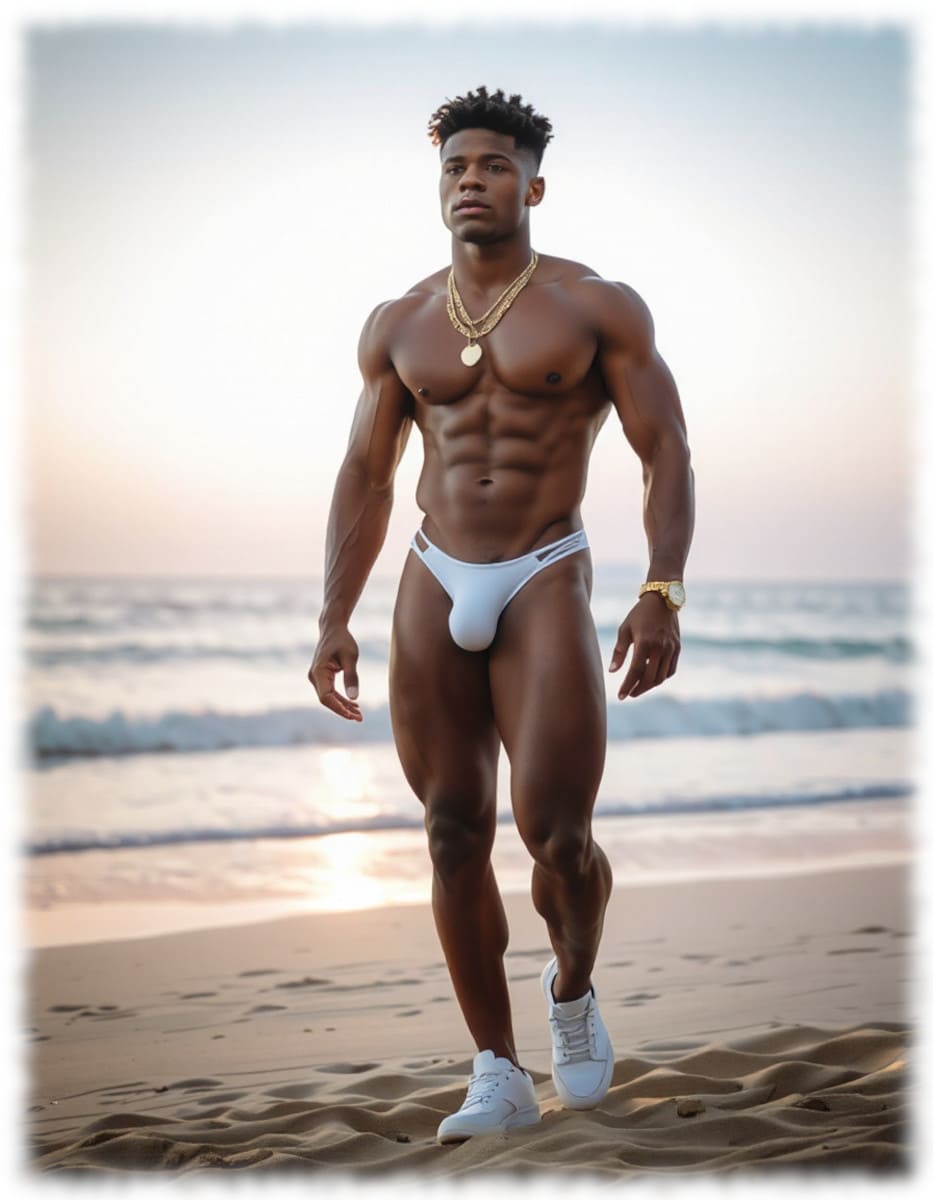 Eager 1 erschafft mit modernster KI-Technologie eine fesselnde und sinnliche Welt homoerotischer Kunst, in der fast ausschließlich farbige, muskulöse Männer im Mittelpunkt stehen. Ihre Körper sind kraftvoll, mit perfekten Proportionen und oft imposant bestückt. In unterschiedlichsten Szenen – von sinnlich-intimen Momenten bis zu teils unterwürfigen Posen – zeigen sie sich nackt, selbstbewusst, zeigefreudig und in offener Erregung.