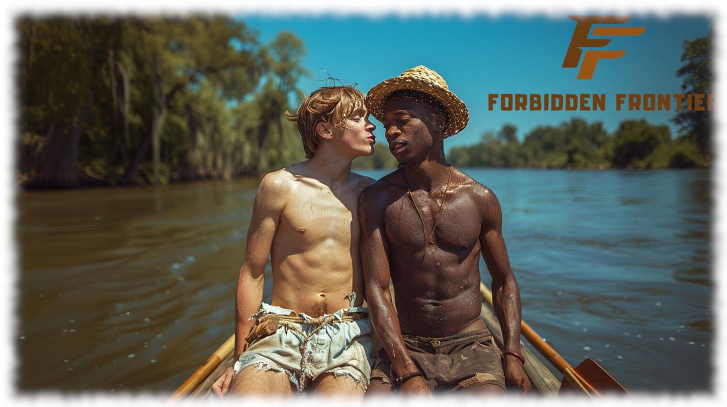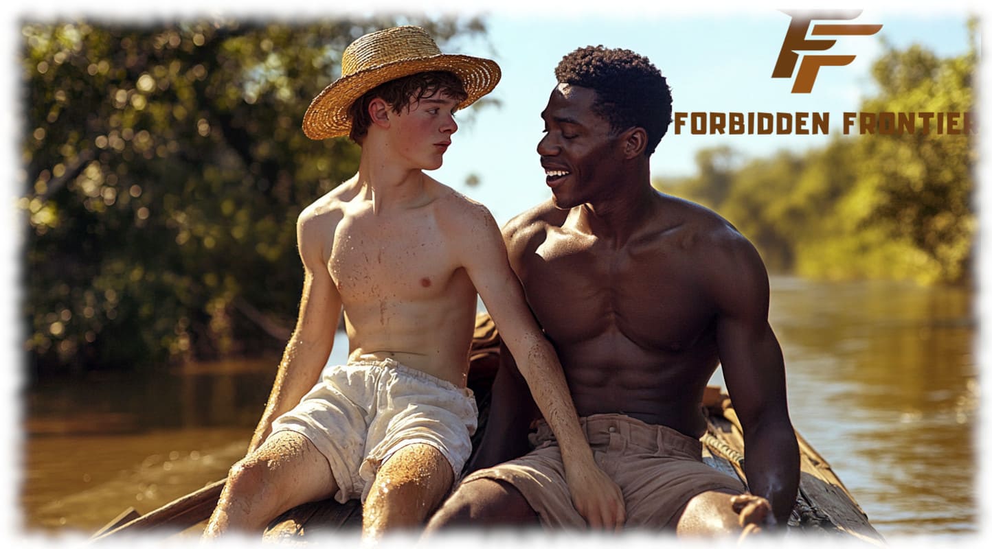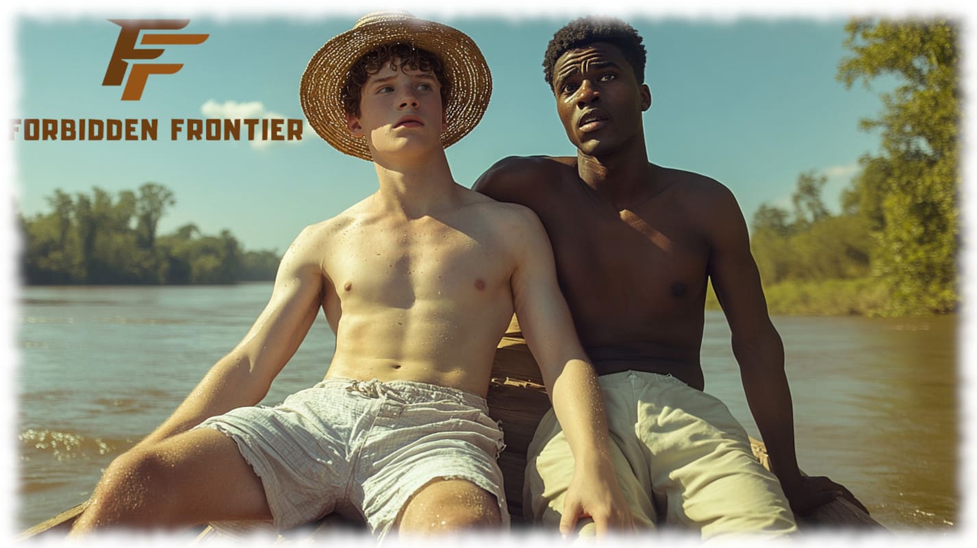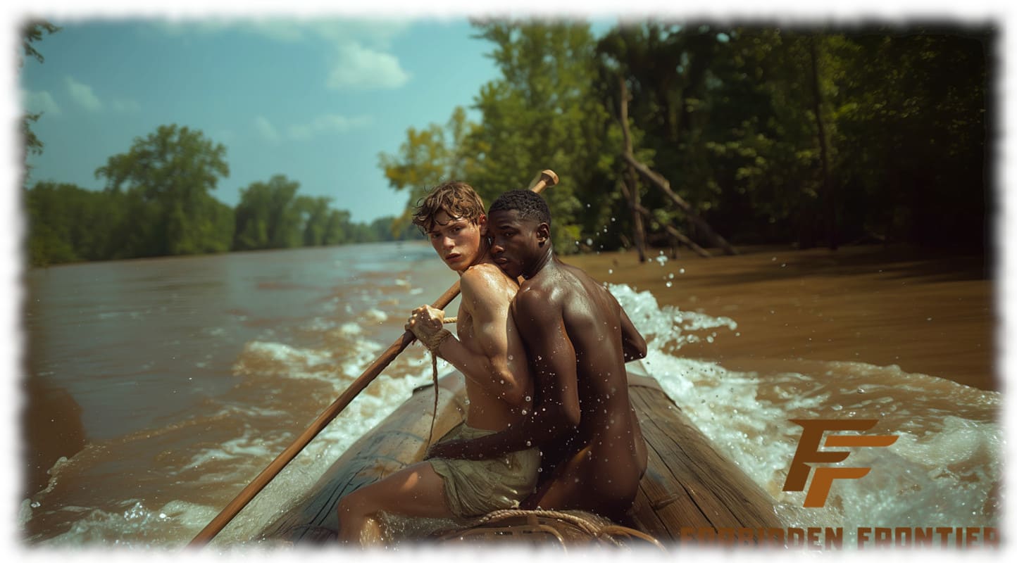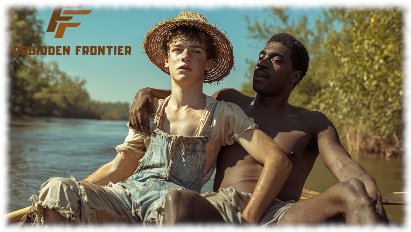 In Huck und Jim enthüllt Forbidden Frontier mit der Kraft moderner KI-Kunst jene tabuisierten Begierden und verbotenen Wünsche, die Mark Twain nicht erzählen konnte, als sein Roman 1884 erstmals erschien. Die Werke stellen Huck und Jim in einer neu interpretierten, homoerotischen Dimension dar – sinnlich, mutig und voller körperlicher Präsenz.