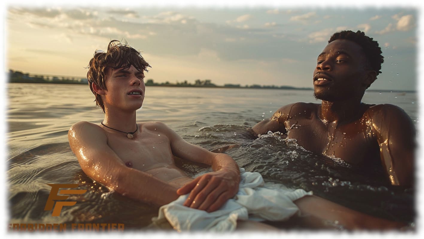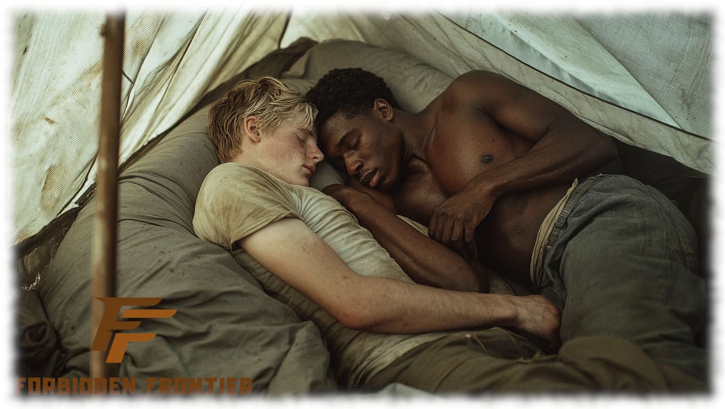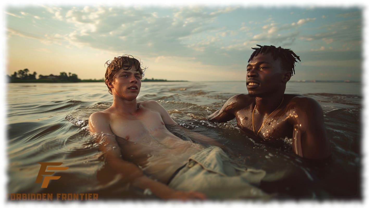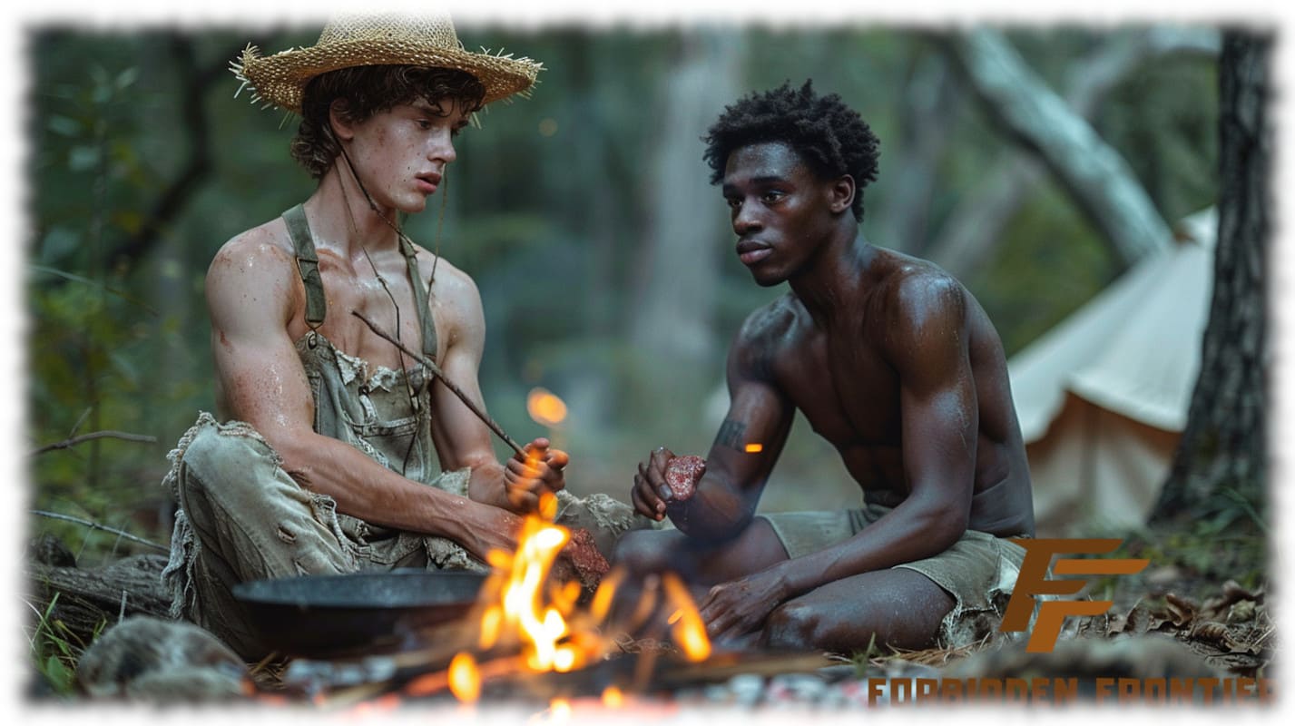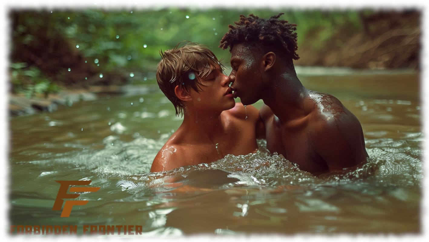 In Huck und Jim enthüllt Forbidden Frontier mit der Kraft moderner KI-Kunst jene tabuisierten Begierden und verbotenen Wünsche, die Mark Twain nicht erzählen konnte, als sein Roman 1884 erstmals erschien. Die Werke stellen Huck und Jim in einer neu interpretierten, homoerotischen Dimension dar – sinnlich, mutig und voller körperlicher Präsenz.