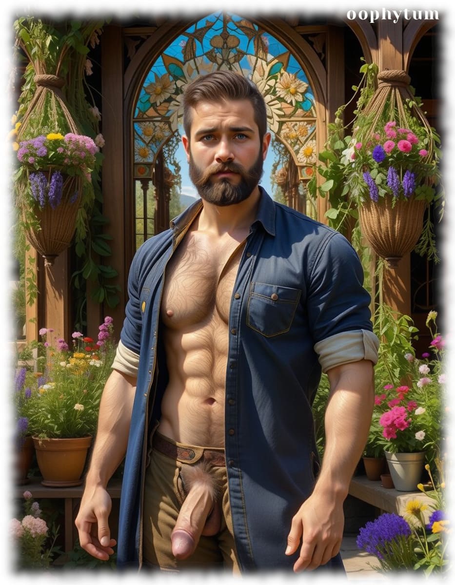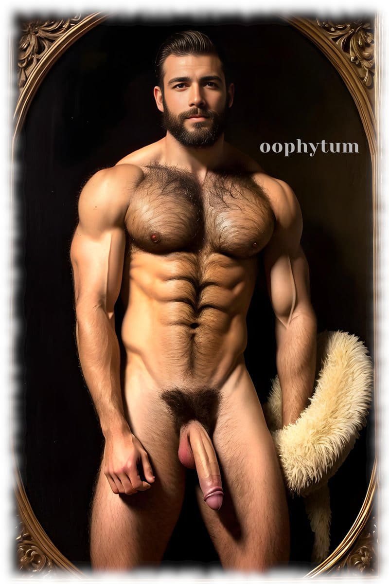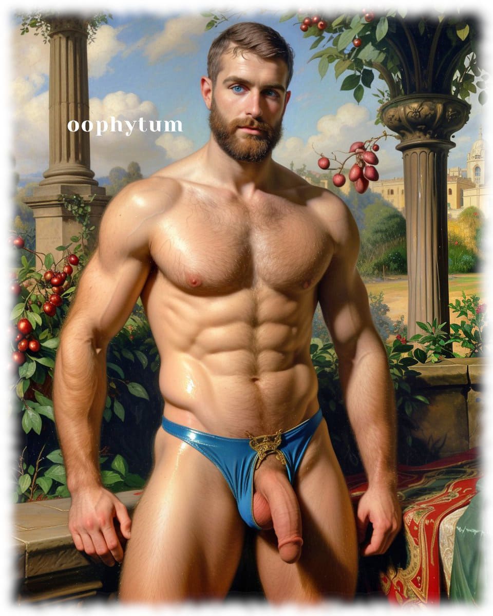 Garden of Queer Delights öffnet dir die Tore zu einer opulenten, sinnlichen Bilderwelt eines KI-Künstlers, in der kräftige, behaarte Männer in vielfältigen, kunstvoll komponierten Szenen zum Leben erwachen.