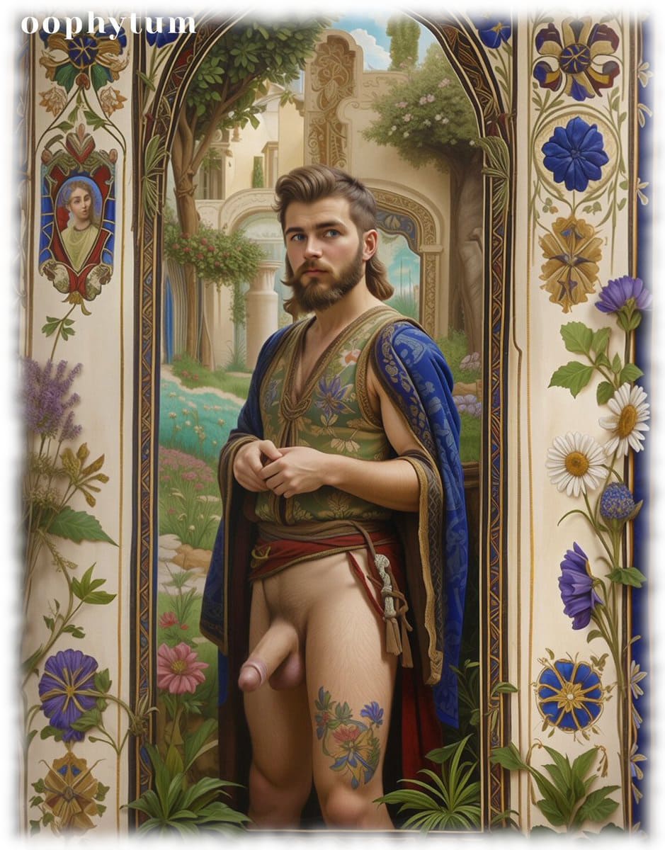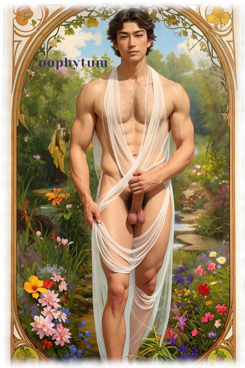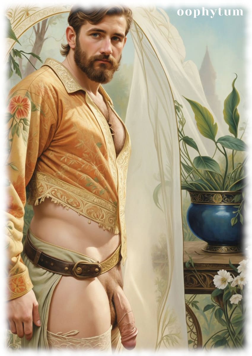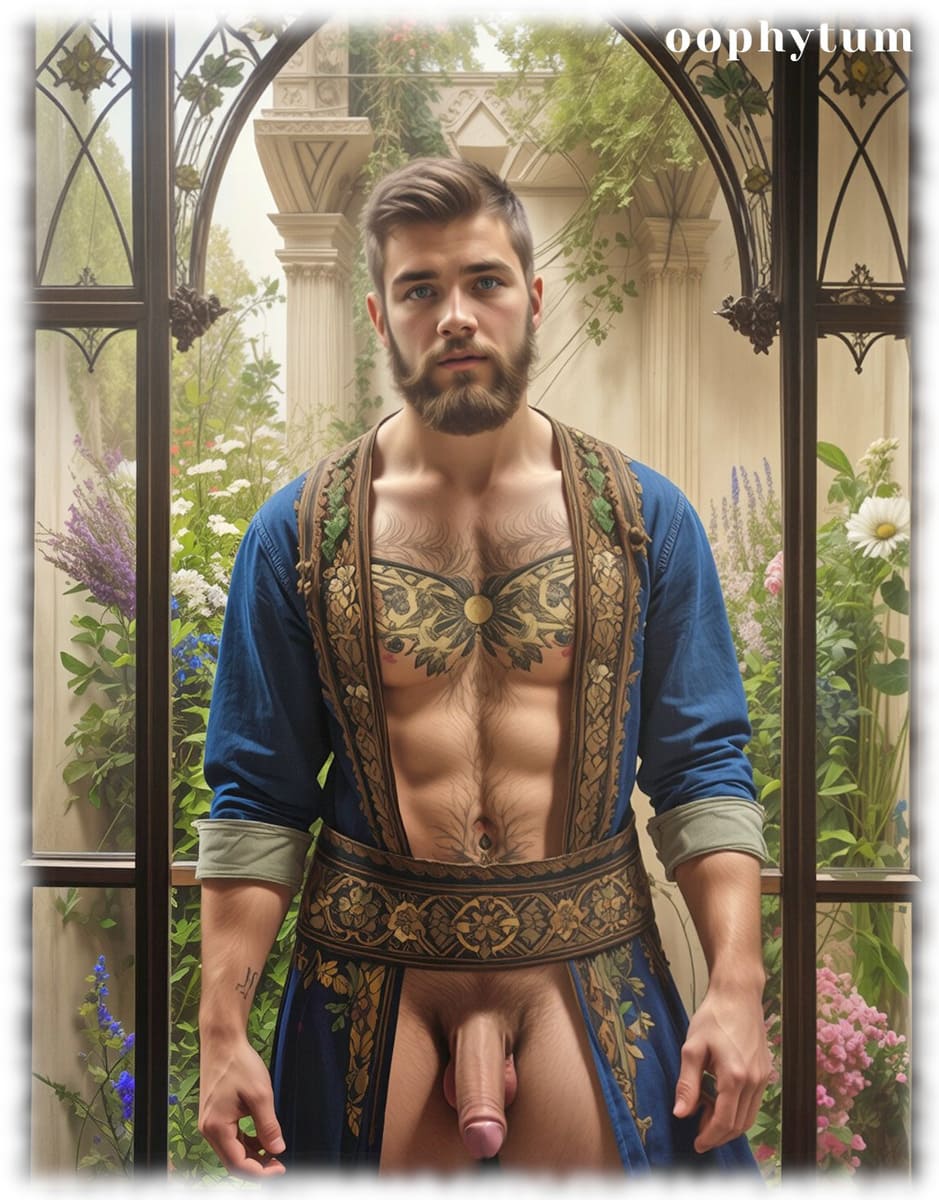Garden of Queer Delights öffnet dir die Tore zu einer opulenten, sinnlichen Bilderwelt eines KI-Künstlers, in der kräftige, behaarte Männer in vielfältigen, kunstvoll komponierten Szenen zum Leben erwachen.