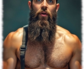 Garden of Queer Delights öffnet dir die Tore zu einer opulenten, sinnlichen Bilderwelt eines KI-Künstlers, in der kräftige, behaarte Männer in vielfältigen, kunstvoll komponierten Szenen zum Leben erwachen.