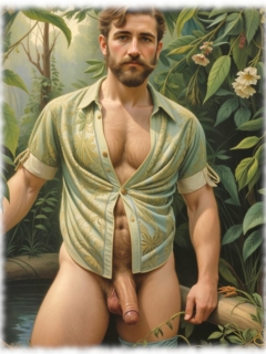 Garden of Queer Delights öffnet dir die Tore zu einer opulenten, sinnlichen Bilderwelt eines KI-Künstlers, in der kräftige, behaarte Männer in vielfältigen, kunstvoll komponierten Szenen zum Leben erwachen. Jede Darstellung ist eine Zelebrierung praller Männlichkeit – vom verschmitzten Blick bis zur selbstbewussten Pose. Die Protagonisten zeigen ihre muskulösen, gut gebauten Körper ohne Scheu, oft nackt, stets zeigefreudig und mit offener Erregung, die den Betrachter fesselt. Mal in erotisch verspielten, mal in kraftvoll heroischen Momenten, fügen sich die Bilder zu einem homoerotischen Gesamtkunstwerk, das Stärke, Sinnlichkeit und visuelle Opulenz meisterhaft vereint.