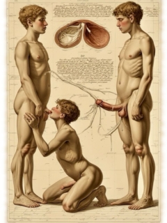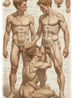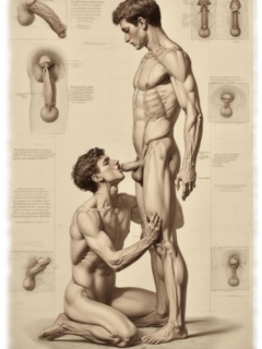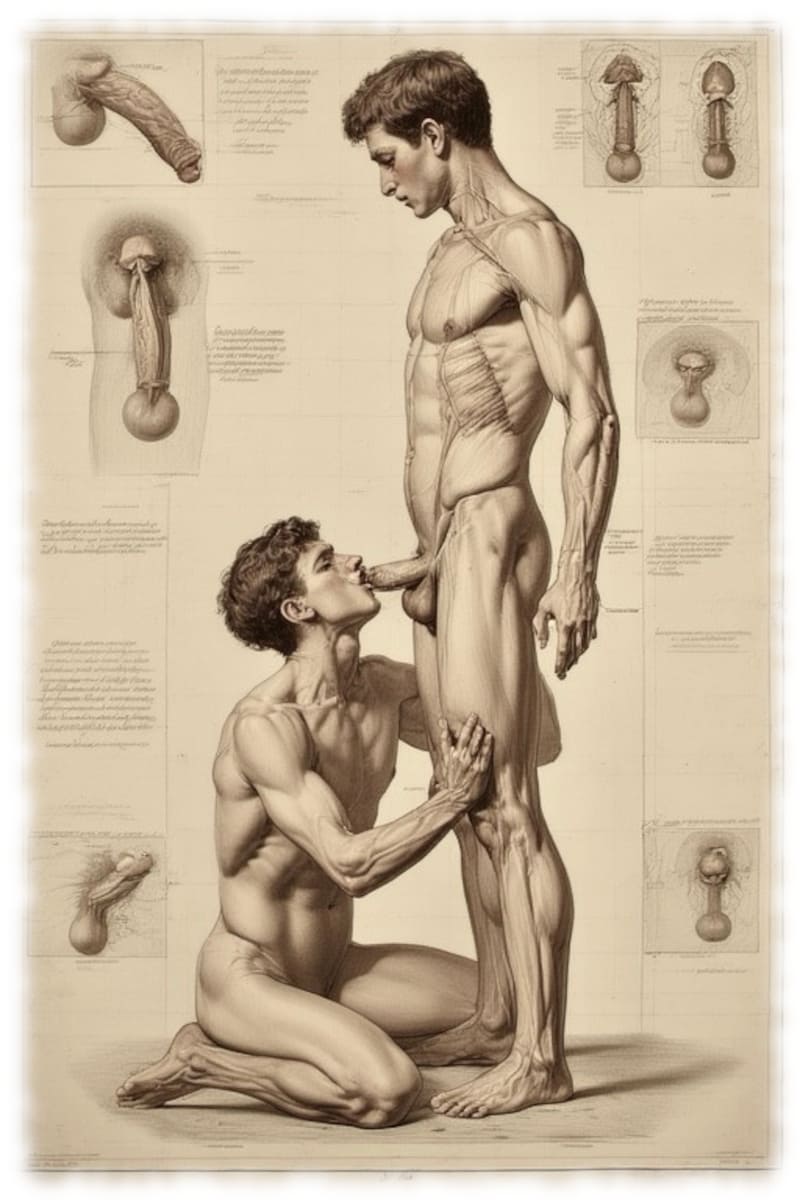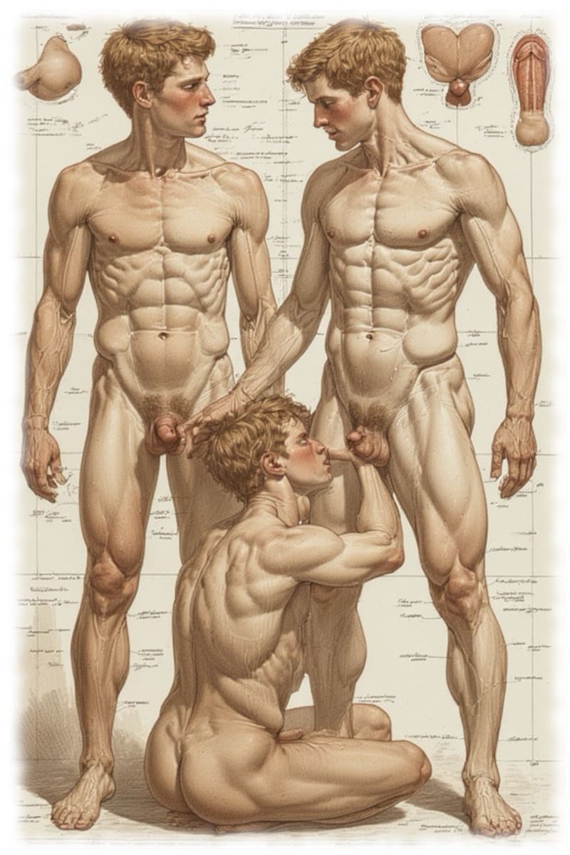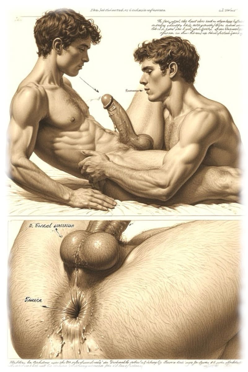 Die Kupferstiche zeigen anatomische Studien, Szenen körperlicher Interaktion zwischen Männern sowie Darstellungen, die aus heutiger Perspektive sowohl medizinische Dokumentation als auch künstlerische Interpretation sein können.