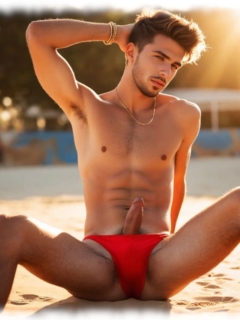 Die Motive zeigen verschiedene Männertypen – vom leidenschaftlichen Ginger Men mit markanten Zügen bis zum maskulinen, unrasierten und behaarten Körper – in ausdrucksstarken, digitalen Kompositionen. Die Figuren werden oft nackt, zeigefreudig und mit offener Erregung dargestellt, eingefangen in Momenten voller Selbstbewusstsein und erotischer Spannung. Mit modernster KI-Technologie entstehen Werke, die Körper, Persönlichkeit und Atmosphäre in harmonischer Balance präsentieren.
