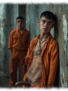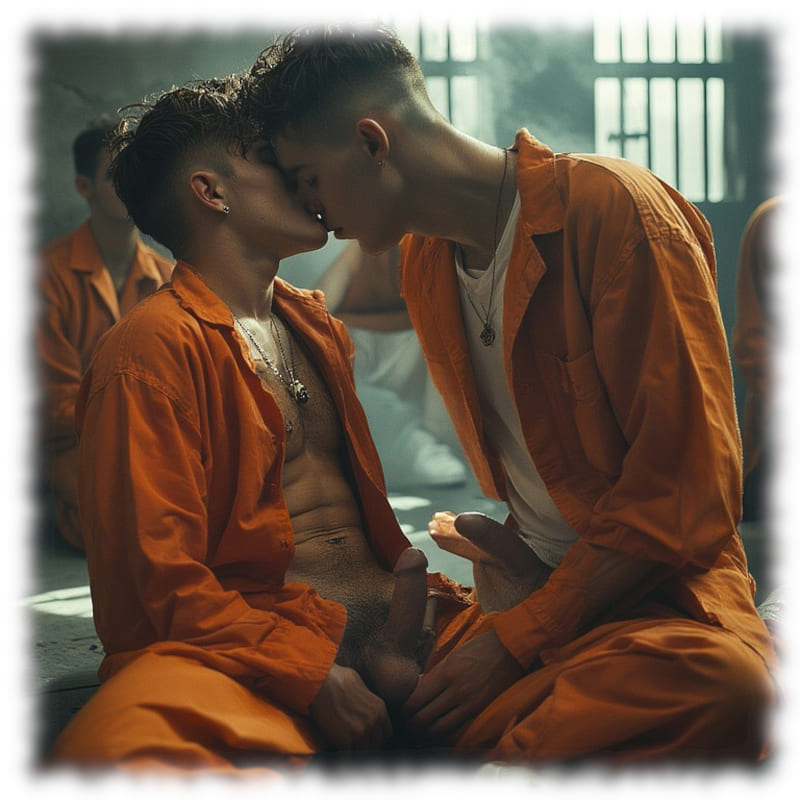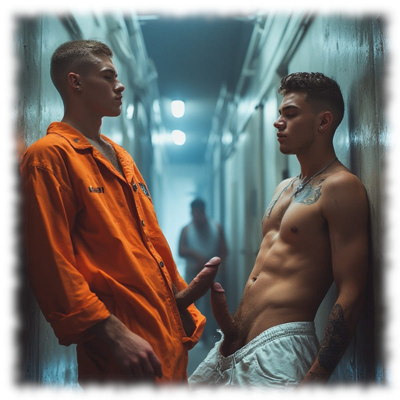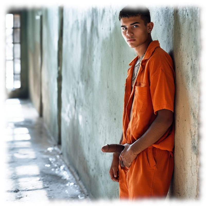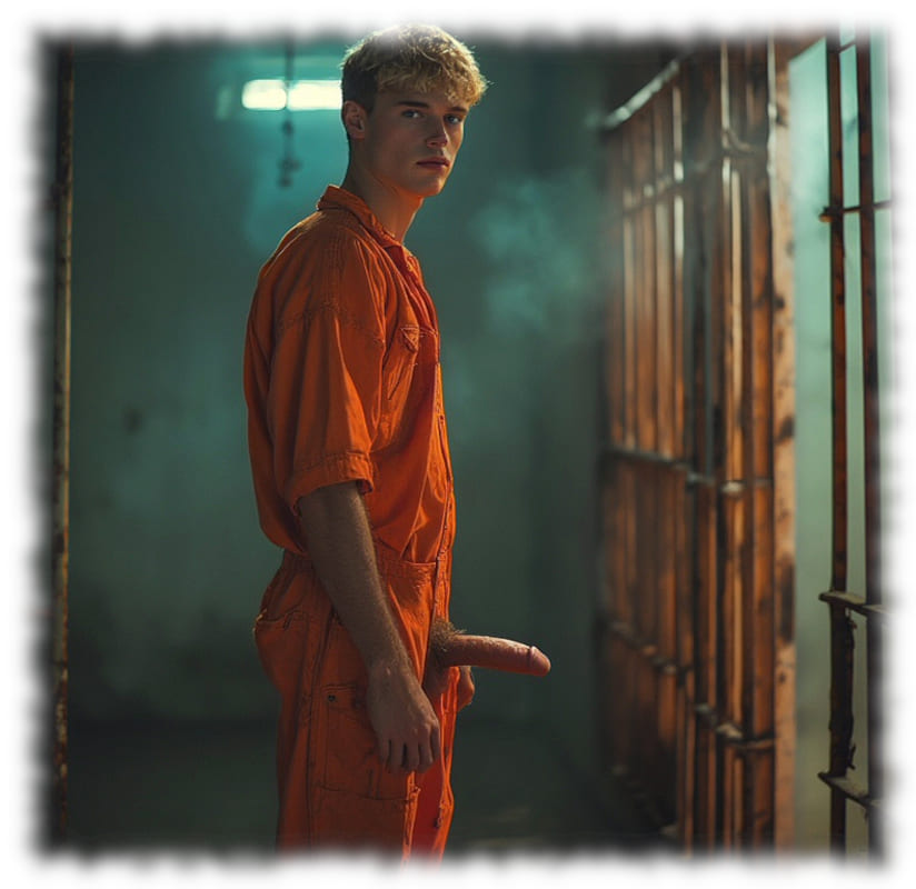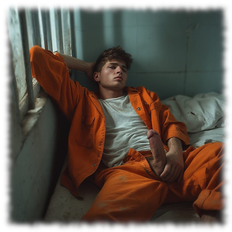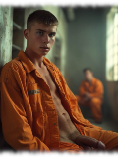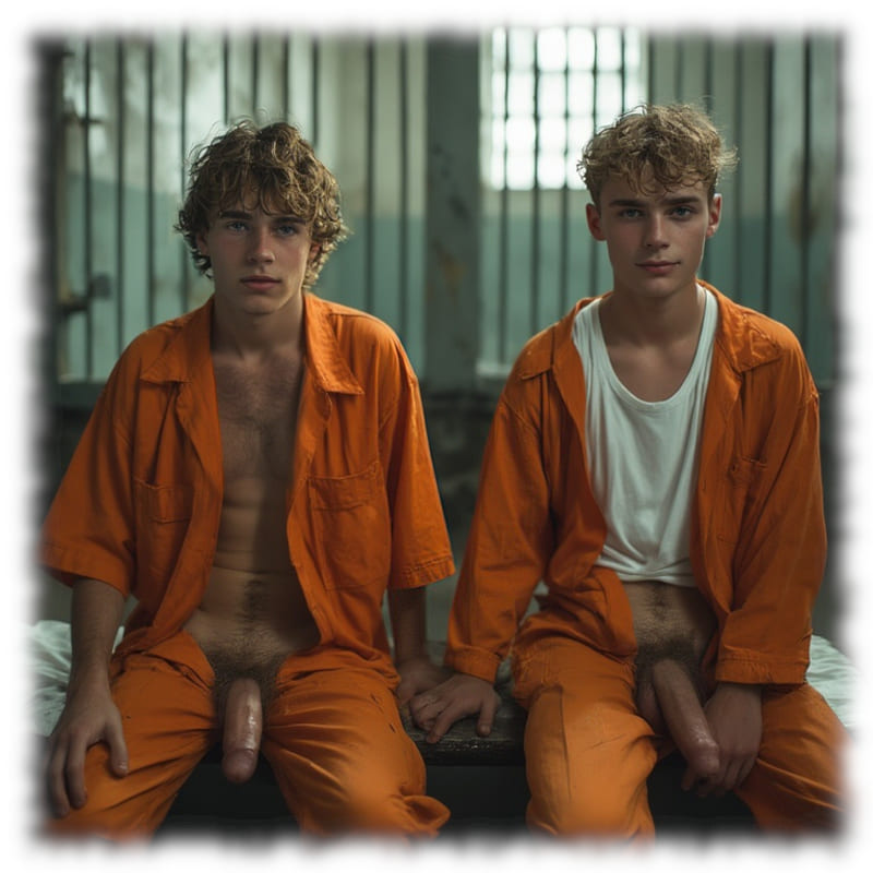 Im Mittelpunkt stehen volljährige Twinks und andere junge Gefangene, inszeniert in ikonischen orangenen Overalls oder bewusst reduziert – nackt, selbstbewusst und zeigefreudig, ohne ins Explizite zu kippen.