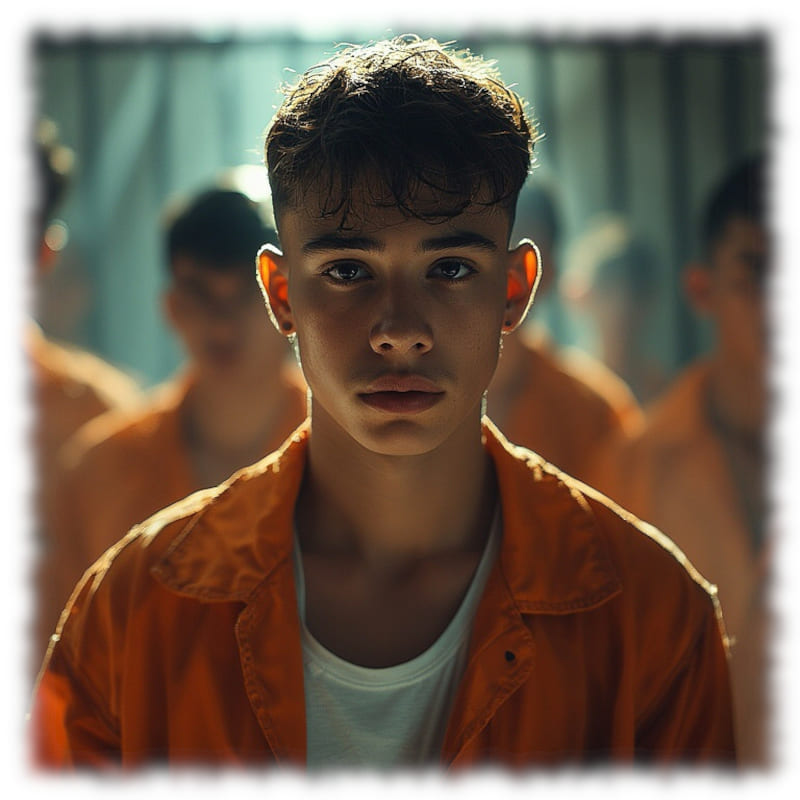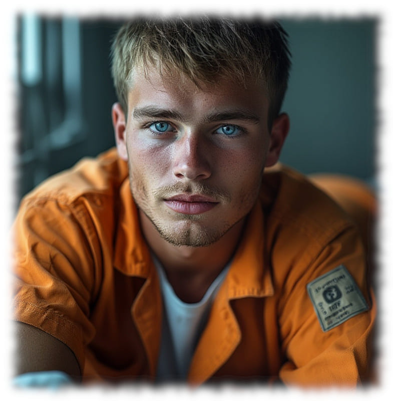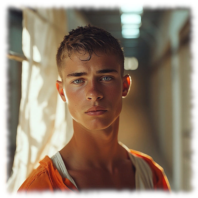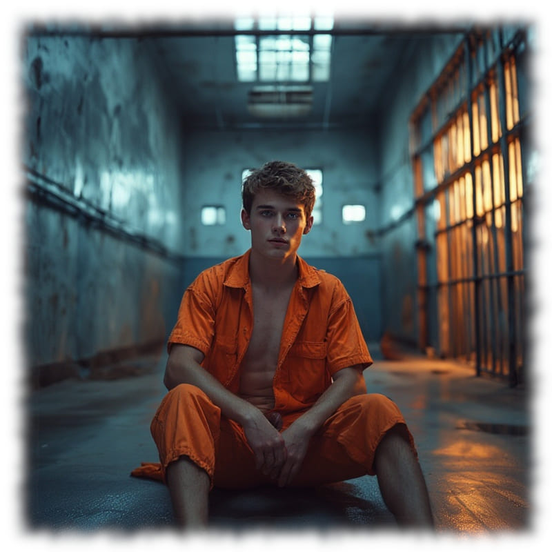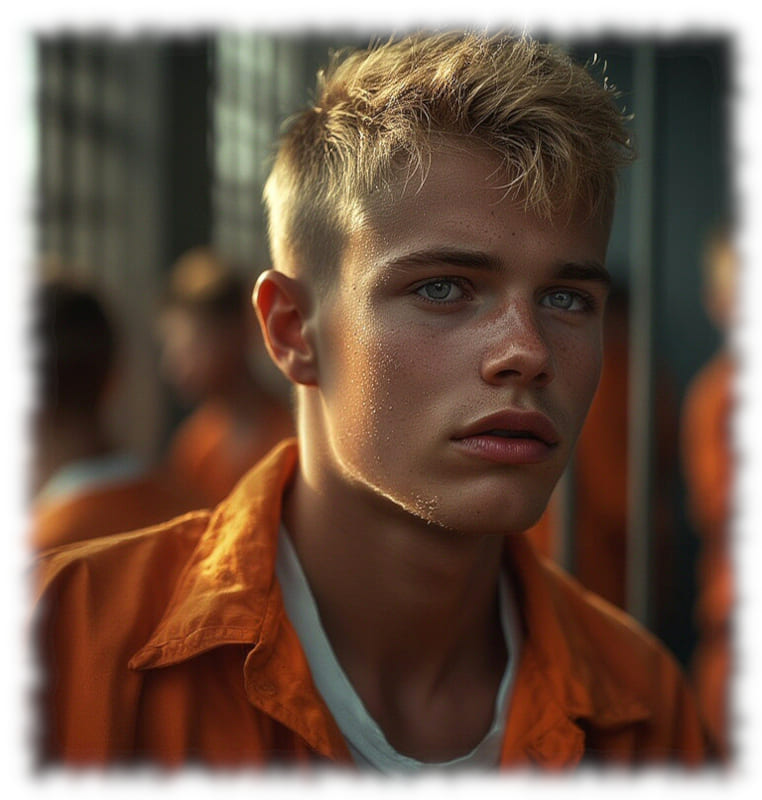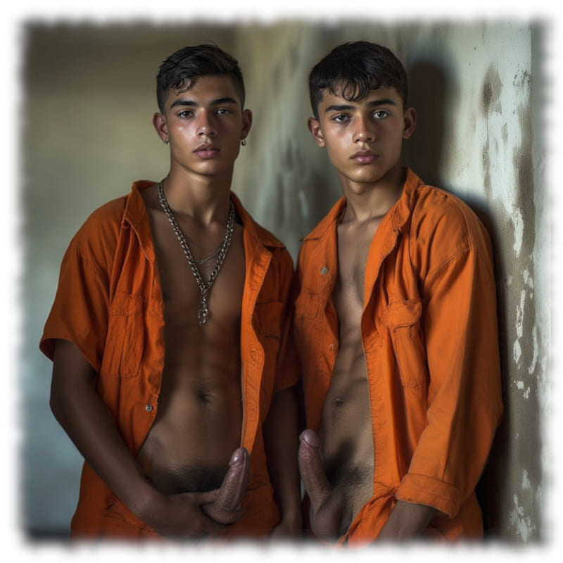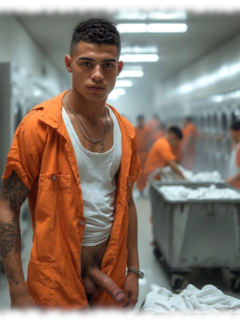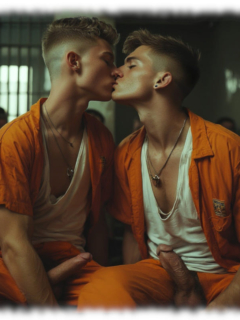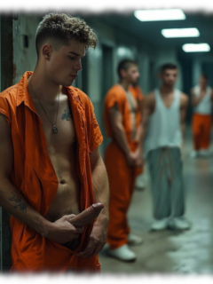 Im Mittelpunkt stehen volljährige Twinks und andere junge Gefangene, inszeniert in ikonischen orangenen Overalls oder bewusst reduziert – nackt, selbstbewusst und zeigefreudig, ohne ins Explizite zu kippen.