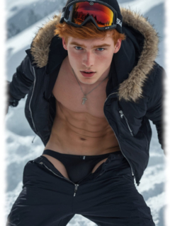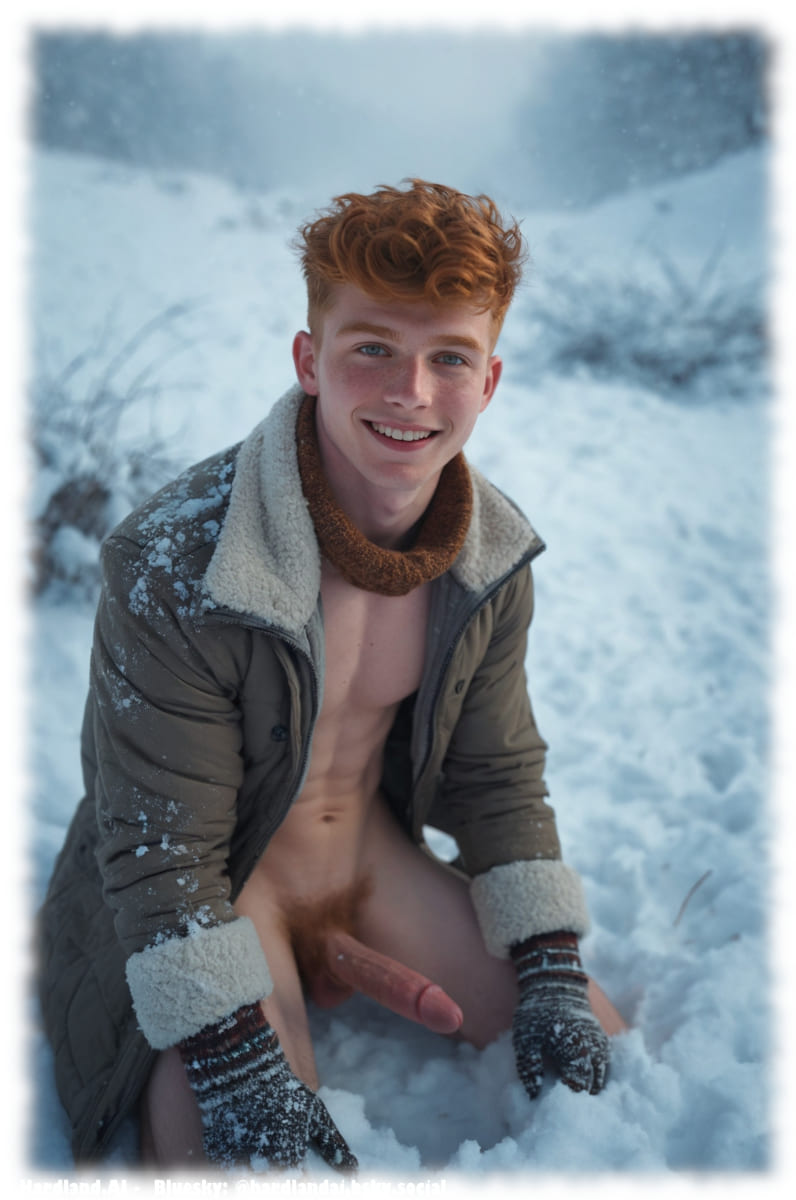 Die Bildwelten spielen mit Frost, Atemwolken und verschneiten Landschaften, während die Körperlichkeit offen, selbstbewusst und klar homoerotisch dargestellt wird. Nacktheit wird hier nicht als Provokation verstanden, sondern als Ausdruck von Stärke, Verletzlichkeit und ästhetischer Spannung. Cool Ginger Guys in Winter verbindet digitale Kunst mit sinnlicher Atmosphäre und erschafft eine kühle, zugleich körpernahe Bildsprache voller Kontraste.