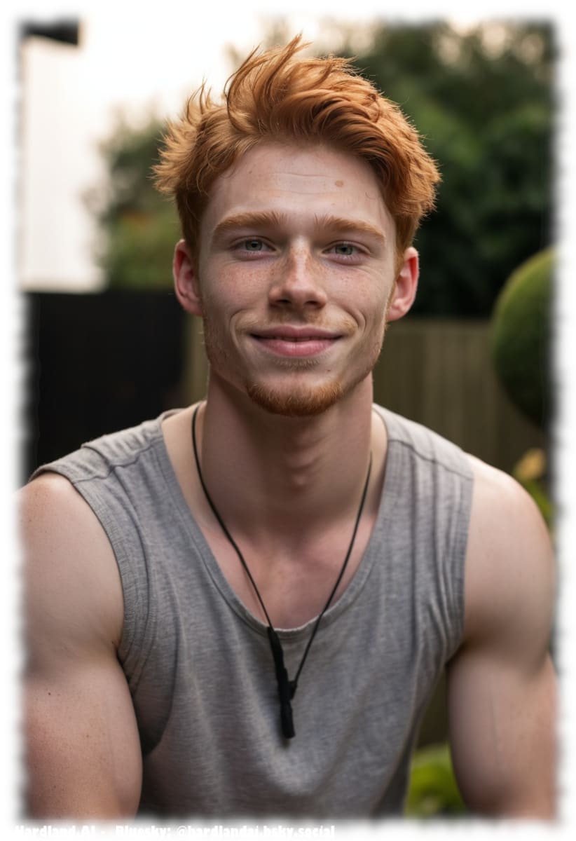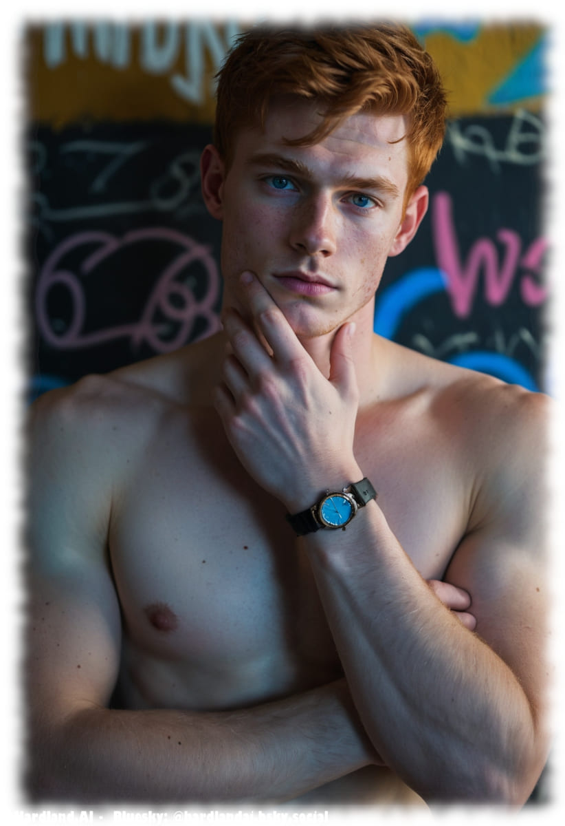 Hardland AI ist das kreative Projekt eines KI-Künstlers, der in experimentellen Bildwelten die besondere Ausstrahlung rothaariger Männer in Szene setzt. Mit modernster KI-Technologie entstehen Kompositionen, die ginger men in homoerotischen, sinnlich aufgeladenen Momenten zeigen – mal ästhetisch reduziert, mal provokant inszeniert.