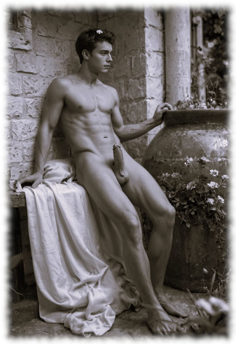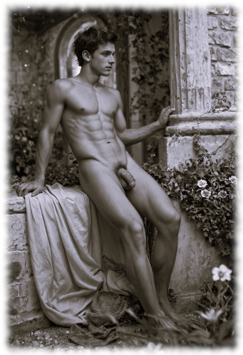 Zu sehen sind „sizilianische Knaben“ in antiker Kleidung oder vollständig nackt, zeigefreudig und mit offener Erregung – inszeniert in sonnengetränkten Landschaften, umgeben von Ruinen und mediterraner Natur. Die Werke verbinden klassische Komposition, homoerotische Spannung und digitale Präzision zu einer zeitlosen Bildsprache, die Geschichte und Gegenwart verschmelzen lässt.