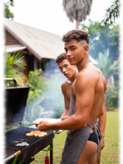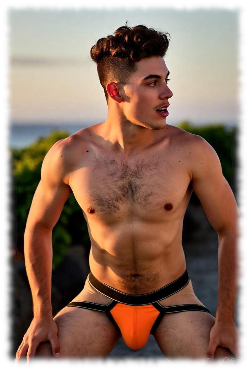 Les fabulations IA de JM entführt in eine poetische Welt homoerotischer KI-Kunst, in der junge, sportliche Männer im Mittelpunkt stehen. Der Künstler verbindet Natürlichkeit mit Sinnlichkeit – Körper, Licht und Landschaft verschmelzen zu einer ästhetischen Erzählung über Nähe, Freiheit und Begehren. Die leicht behaarten Körper spiegeln Stärke und Authentizität, während die Motive stets einen Hauch von Intimität und Verbundenheit zur Natur tragen.