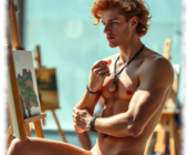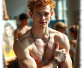 Ein talentierter KI-Künstler präsentiert junge Männer – darunter auch verführerische „Ginger Men“ mit feurigem Haar – in sportlichen Posen und vielfältigen Situationen. Die Werke bewegen sich zwischen historischen Szenarien und fantasievollen Welten, von antiken Helden über verwegene Piraten bis hin zu epischen Fantasy-Settings mit mystischer Atmosphäre.