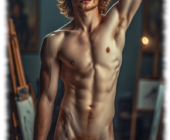 Mit kunstvoller Ästhetik entstehen sinnliche, homoerotische Momente, die mal verspielt, mal provokant wirken und die Grenzen zwischen Realität und Fantasie aufheben. Die Protagonisten erscheinen oft nackt und zeigefreudig, mit offener Erregung, was den Bildern eine kraftvolle, intime und zugleich fesselnde Ausstrahlung verleiht. Ergänzt durch feine Details, ausdrucksstarke Mimik und dynamische Körpersprache entsteht eine visuelle Hommage an männliche Schönheit, Leidenschaft und künstlerische Sinnlichkeit.