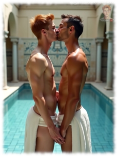 Mit kunstvoller Ästhetik entstehen sinnliche, homoerotische Momente, die mal verspielt, mal provokant wirken und die Grenzen zwischen Realität und Fantasie aufheben. Die Protagonisten erscheinen oft nackt und zeigefreudig, mit offener Erregung, was den Bildern eine kraftvolle, intime und zugleich fesselnde Ausstrahlung verleiht. Ergänzt durch feine Details, ausdrucksstarke Mimik und dynamische Körpersprache entsteht eine visuelle Hommage an männliche Schönheit, Leidenschaft und künstlerische Sinnlichkeit.