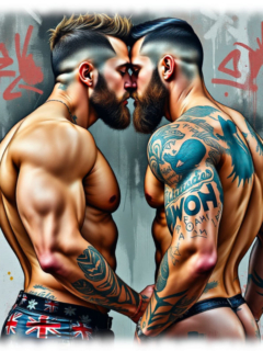 NeonFox, ein visionärer KI-Künstler, erschafft intensive Bildwelten, in denen kräftige, selbstbewusste Männer mit markanter Körperbehaarung im Mittelpunkt stehen. Inspiriert von der Ästhetik der Leder- und Fetischszene, kombiniert er homoerotische Spannung mit künstlerischer Ausdruckskraft. Die Protagonisten erscheinen in kraftvollen Posen, umgeben von atmosphärischem Licht, das ihre Präsenz noch verstärkt.