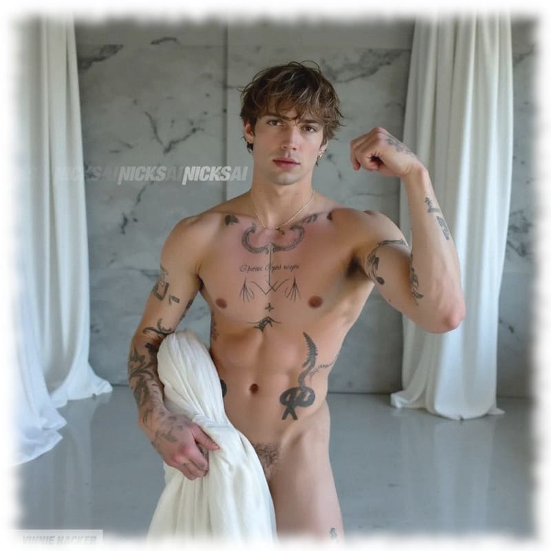 NICKS AI ist ein virtuoser KI-Künstler, der mit beeindruckender Detailtreue und kreativer Vision schöne Männer in unterschiedlichsten Szenarien inszeniert. Seine Kunst vereint historische Epochen – von antiken Schlachtfeldern über viktorianische Salons bis hin zu mittelalterlichen Burghöfen – mit fantastischen Welten voller Magie, Mythen und epischer Abenteuer. Die dargestellten Männer erscheinen mal in aufwendigen Gewändern, mal nackt und zeigefreudig, stets mit einer sinnlichen Präsenz, die den Blick fesselt.