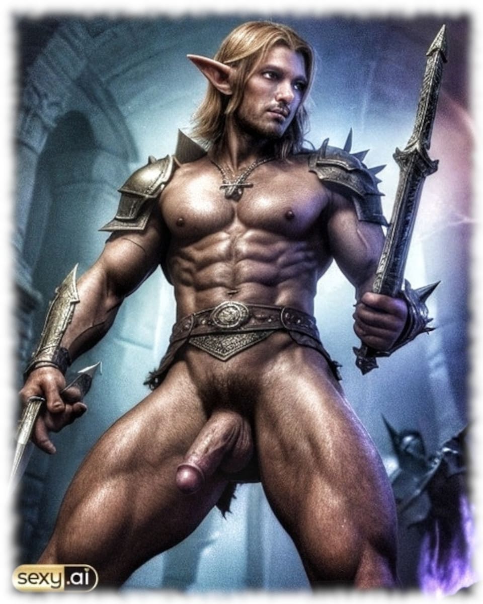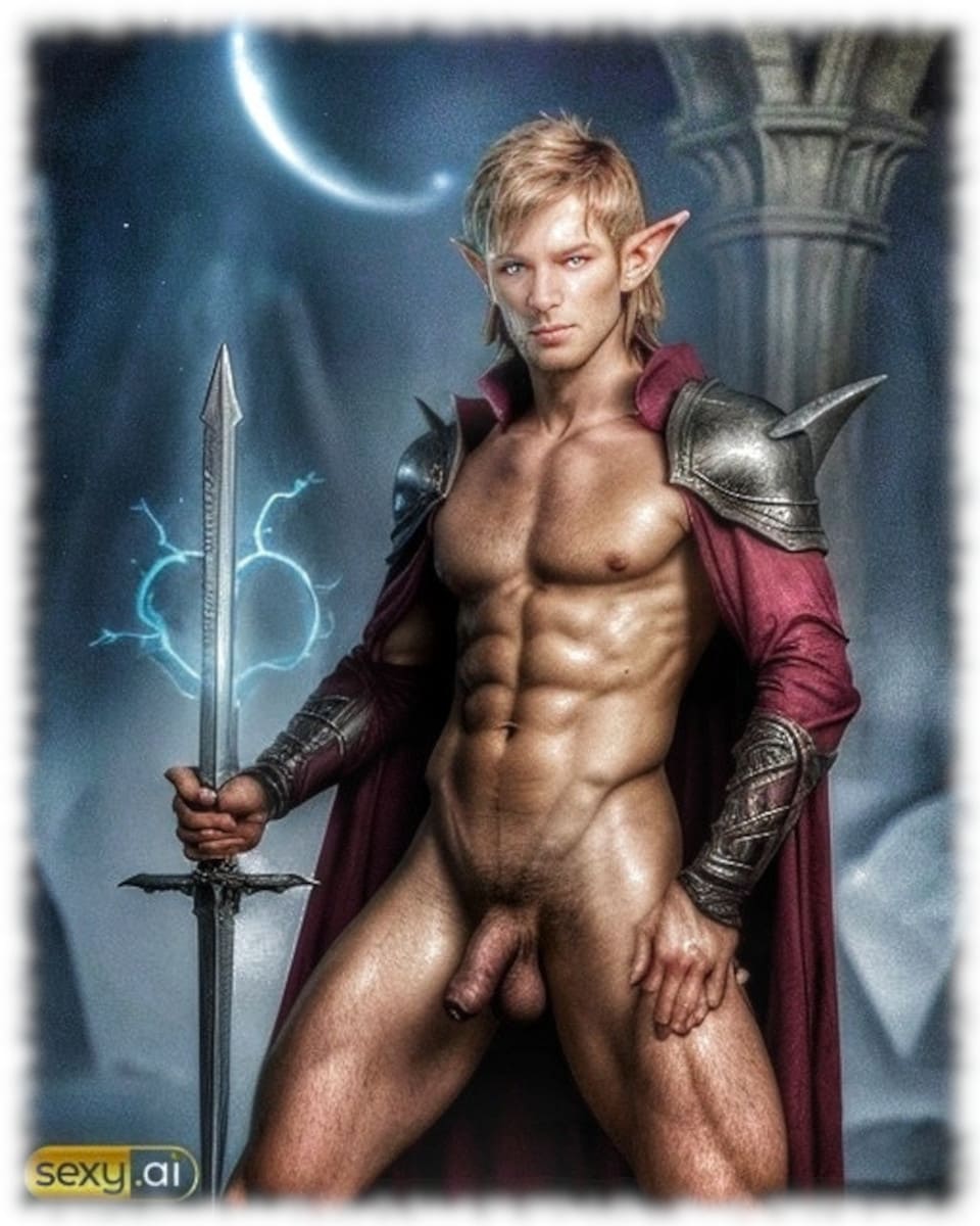 Junger Elfenkrieger, präsentiert stolz seinen durchtrainierten Körper.
