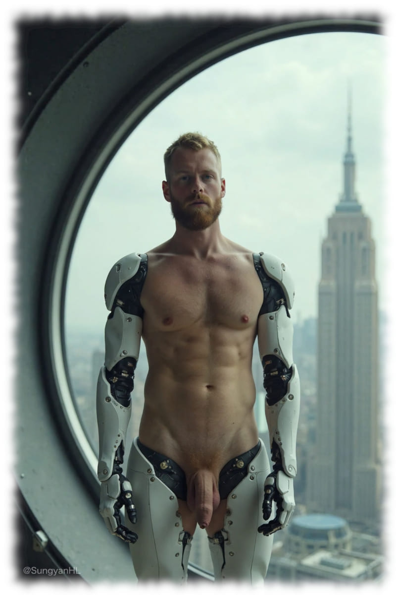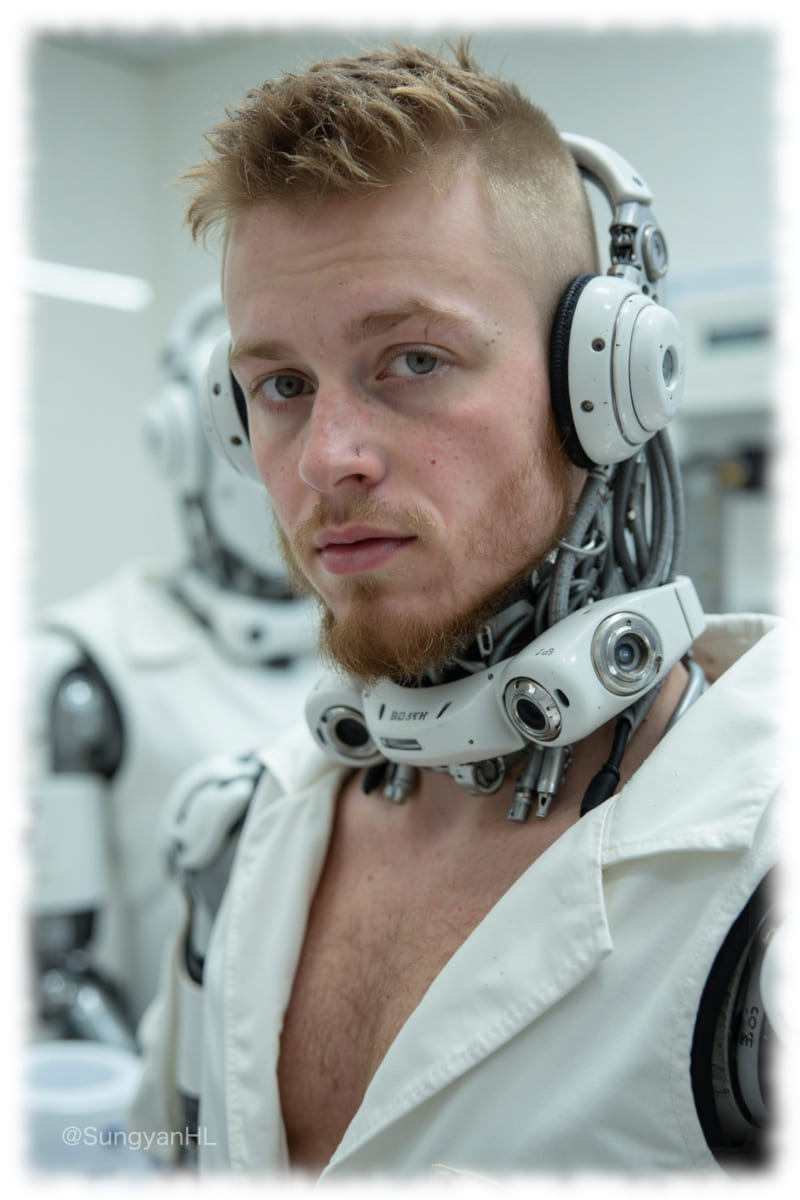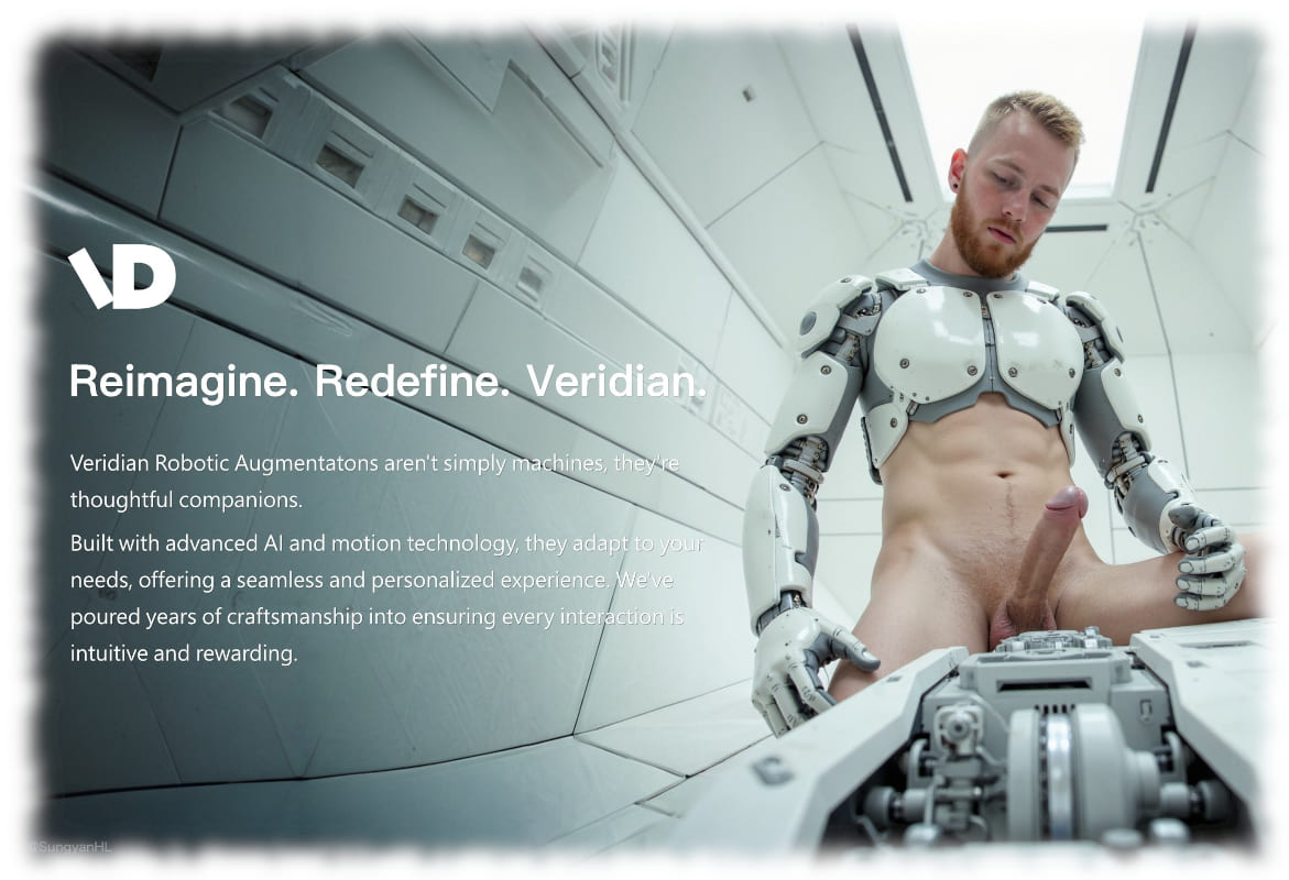 Der talentierte KI-Künstler SungyanHL verbindet in seiner Roboterplattform-Serie technologische Visionen mit homoerotischer Ästhetik. Hier verschmelzen Roboter, Systeme und Cyborgs mit der sinnlichen Darstellung maskuliner Körper, die kraftvoll, nackt und zeigefreudig inszeniert werden. Die Werke thematisieren die Verbesserung der menschlichen Fähigkeiten und zeigen, wie Mensch und Maschine zu einer verführerischen Einheit werden.