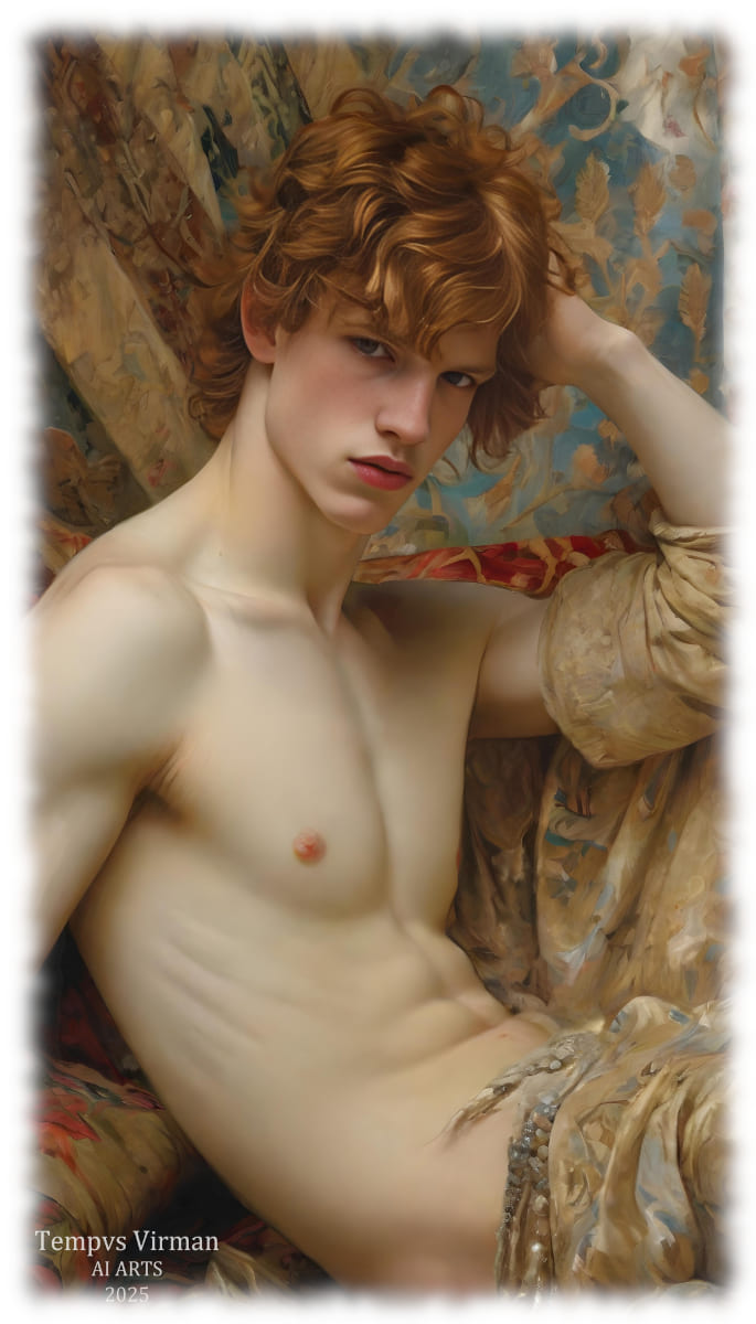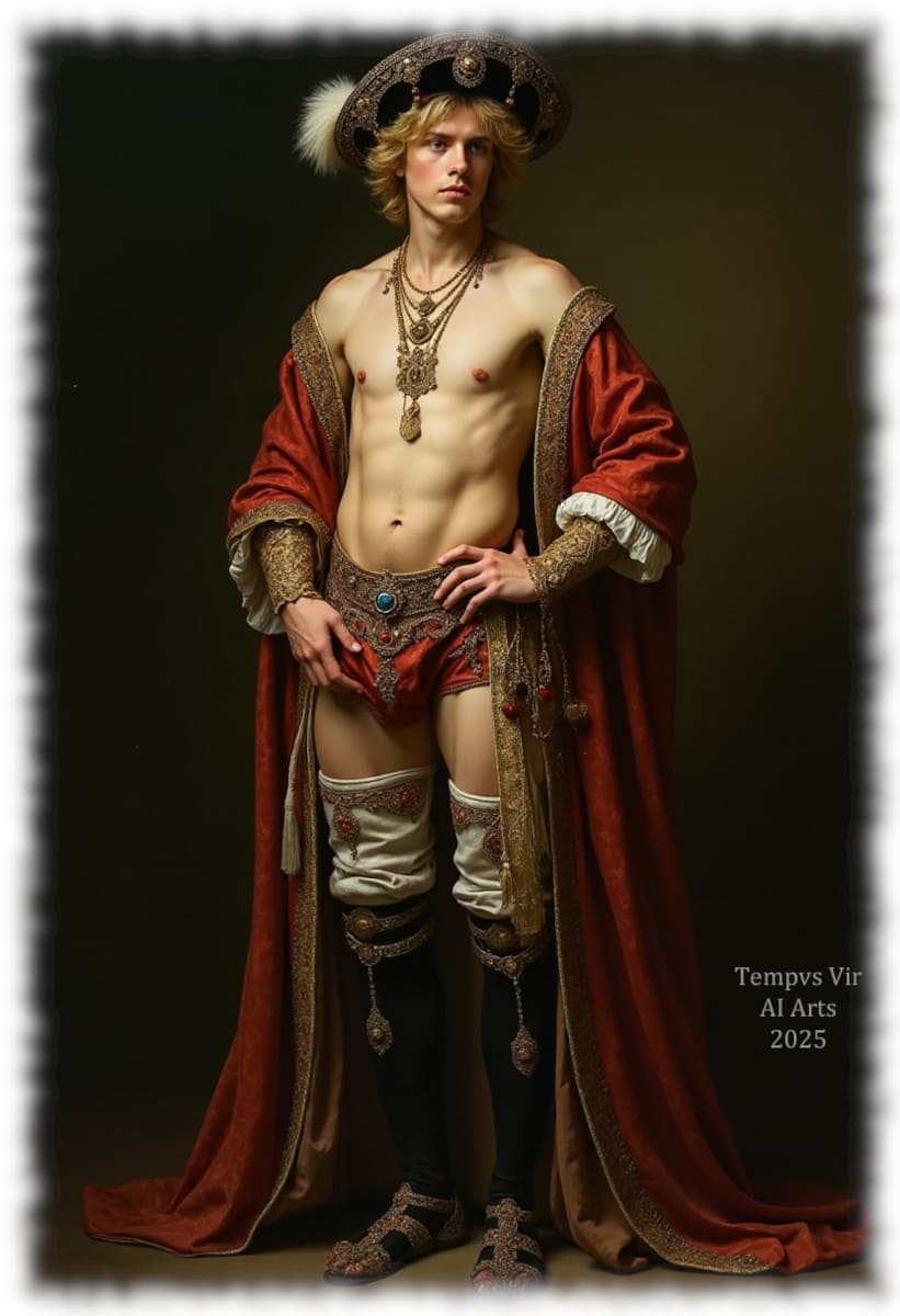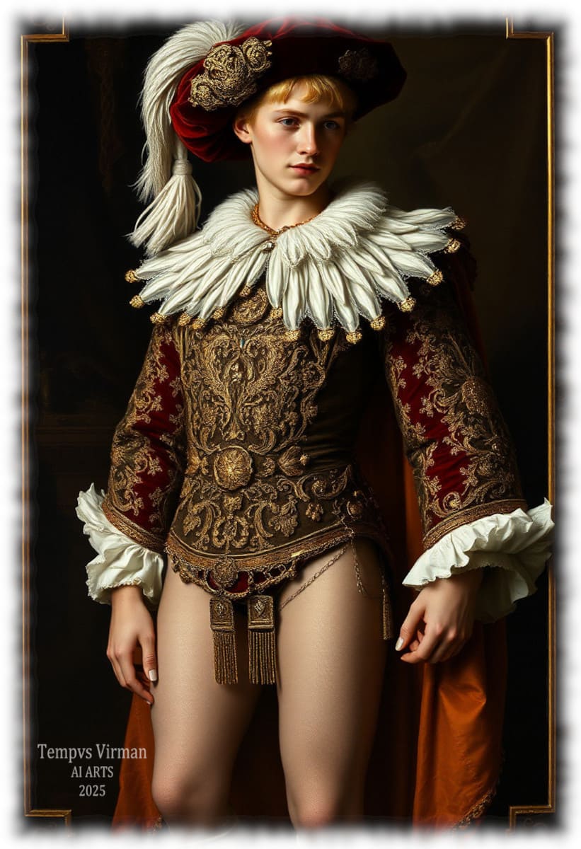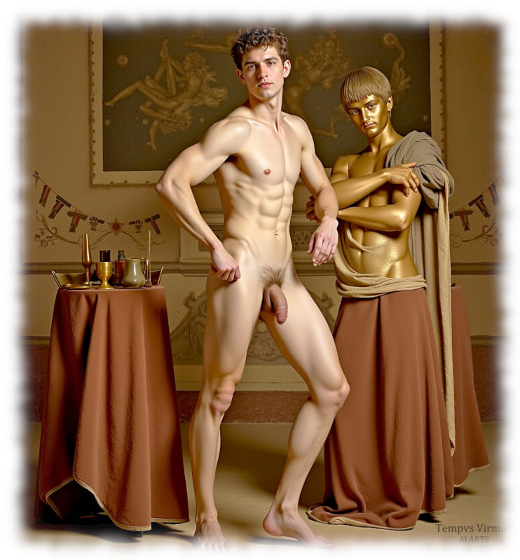 Historical Tempvs Virman ist eine Galerie, in der sich historische Eleganz, künstlerische Sinnlichkeit und modernste Technologie vereinen. Hier entdeckst du KI-generierte Bilder, die Mode vergangener Jahrhunderte – von antiker Gewandung bis zu viktorianischer Schneiderkunst – mit homoerotischer Kunst in einer zeitgemäßen Bildsprache neu interpretieren.