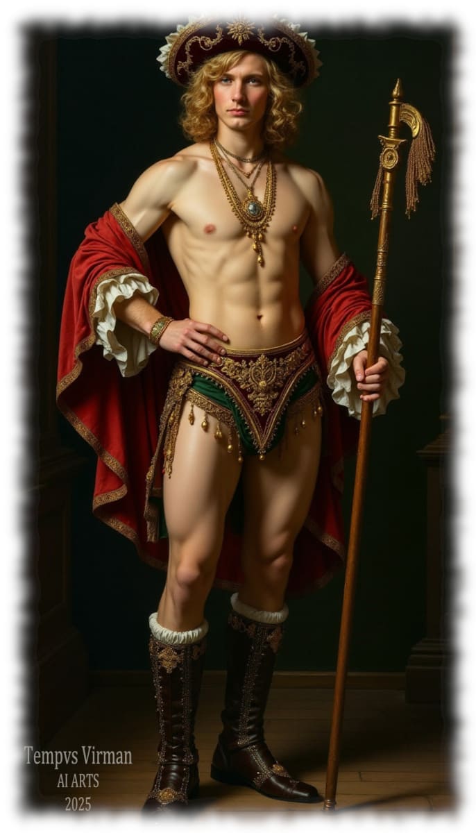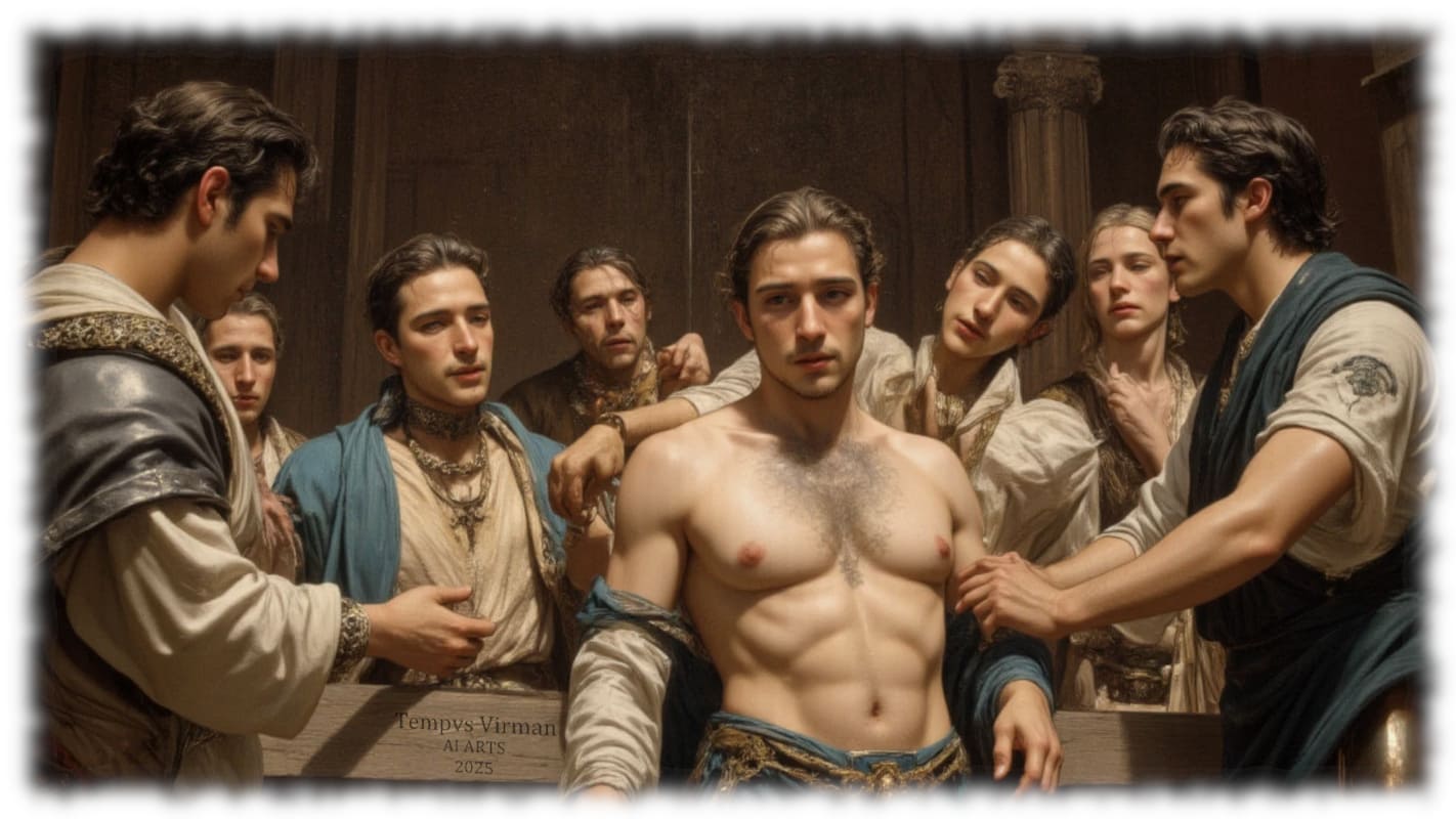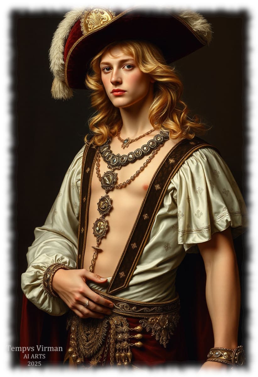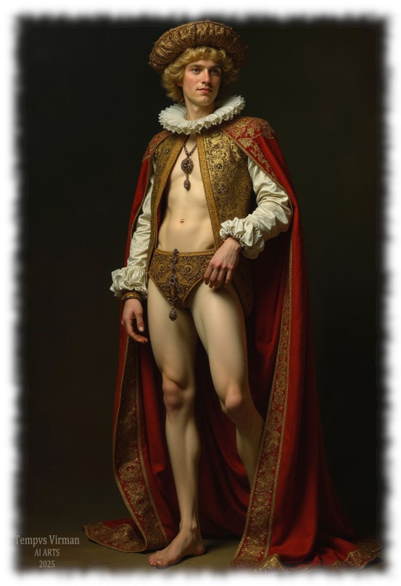 Historical Tempvs Virman ist eine Galerie, in der sich historische Eleganz, künstlerische Sinnlichkeit und modernste Technologie vereinen. Hier entdeckst du KI-generierte Bilder, die Mode vergangener Jahrhunderte – von antiker Gewandung bis zu viktorianischer Schneiderkunst – mit homoerotischer Kunst in einer zeitgemäßen Bildsprache neu interpretieren.