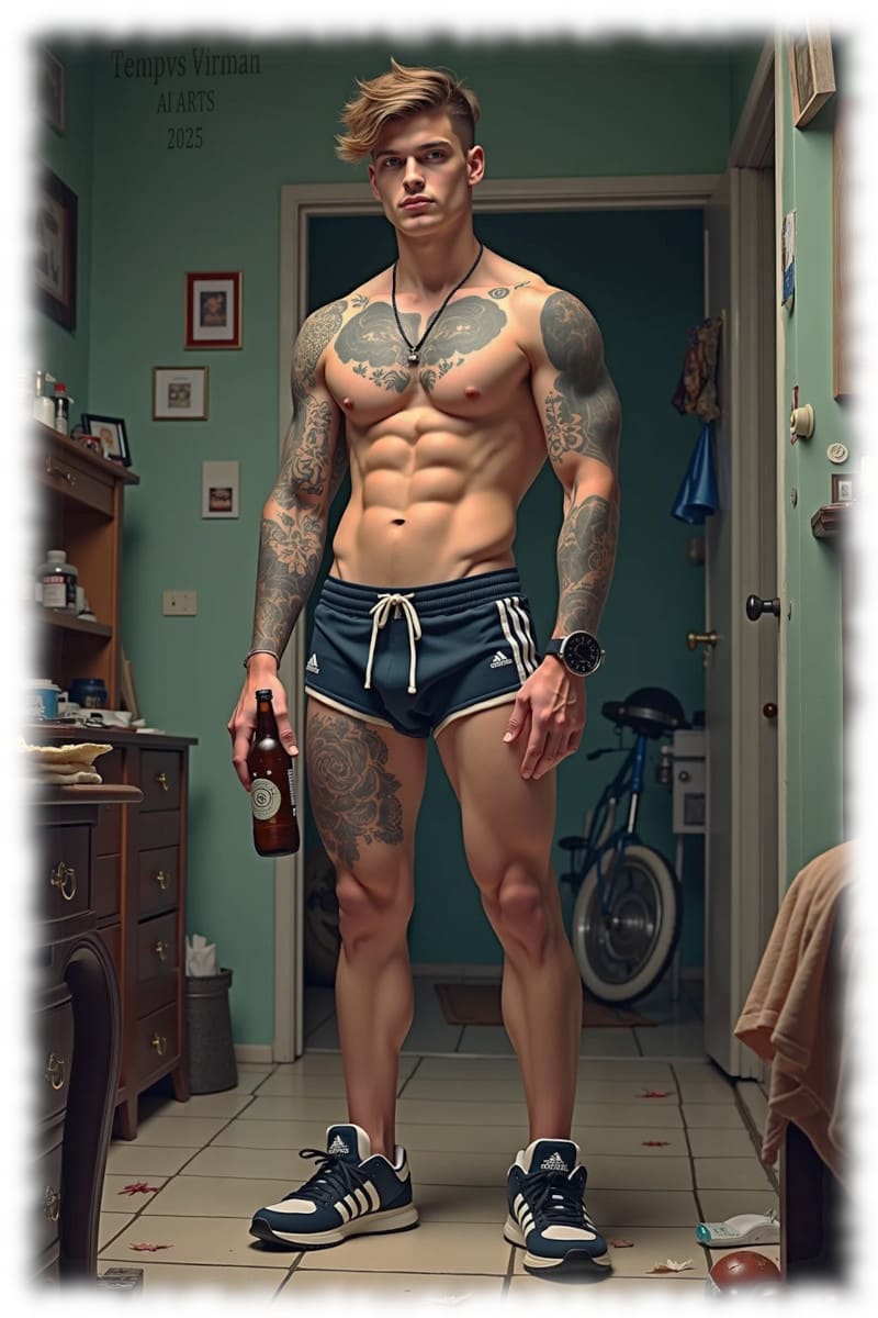 Tempvs Virman ist ein visionärer KI-Künstler, der mit digitaler Präzision und künstlerischem Gespür fesselnde Werke erschafft. In seiner Kunst begegnest Du einer kraftvollen Verbindung aus Ästhetik, Identität und Begehren – oft mit einem deutlich homoerotischen Unterton.