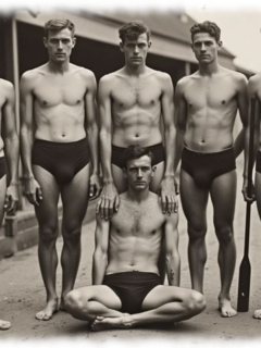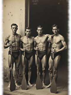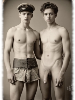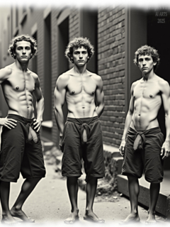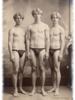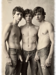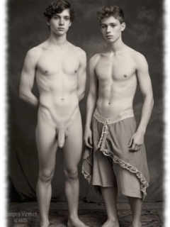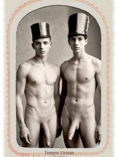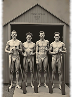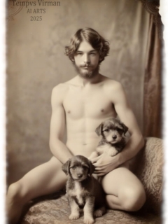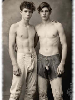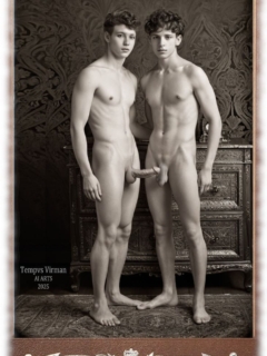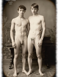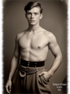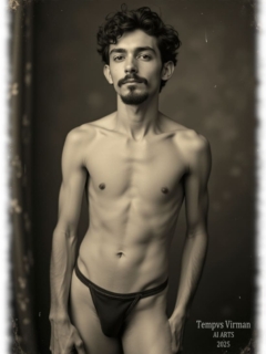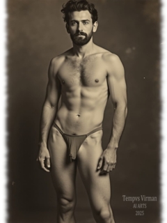 Vintage von Tempvs Virman ist eine Galerie, die KI-generierte Bildwelten im Stil vergangener Jahrzehnte erschafft. Im Mittelpunkt stehen junge Männer in sinnlichen Gruppenszenen – teils nackt, teils in nostalgischer Mode – die eine Mischung aus erotischer Spannung und künstlerischer Ästhetik vermitteln.