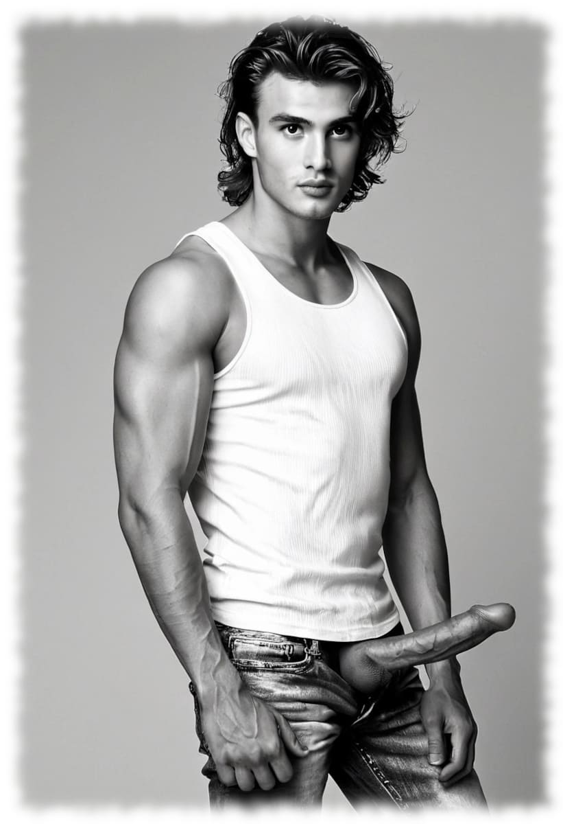 Oft wird eine sehr üppige männliche Ausstattung zelebriert, inszeniert in intimen, homoerotischen Momenten. Ob verspielt, provokant oder sinnlich – die Models zeigen sich nackt, zeigefreudig und mit stolzer Erregung, was den Bildern eine unverkennbare Intensität verleiht. Ein visuelles Fest für Liebhaber männlicher Schönheit, das Jugend, Lust und künstlerische Raffinesse in perfekter Harmonie vereint.